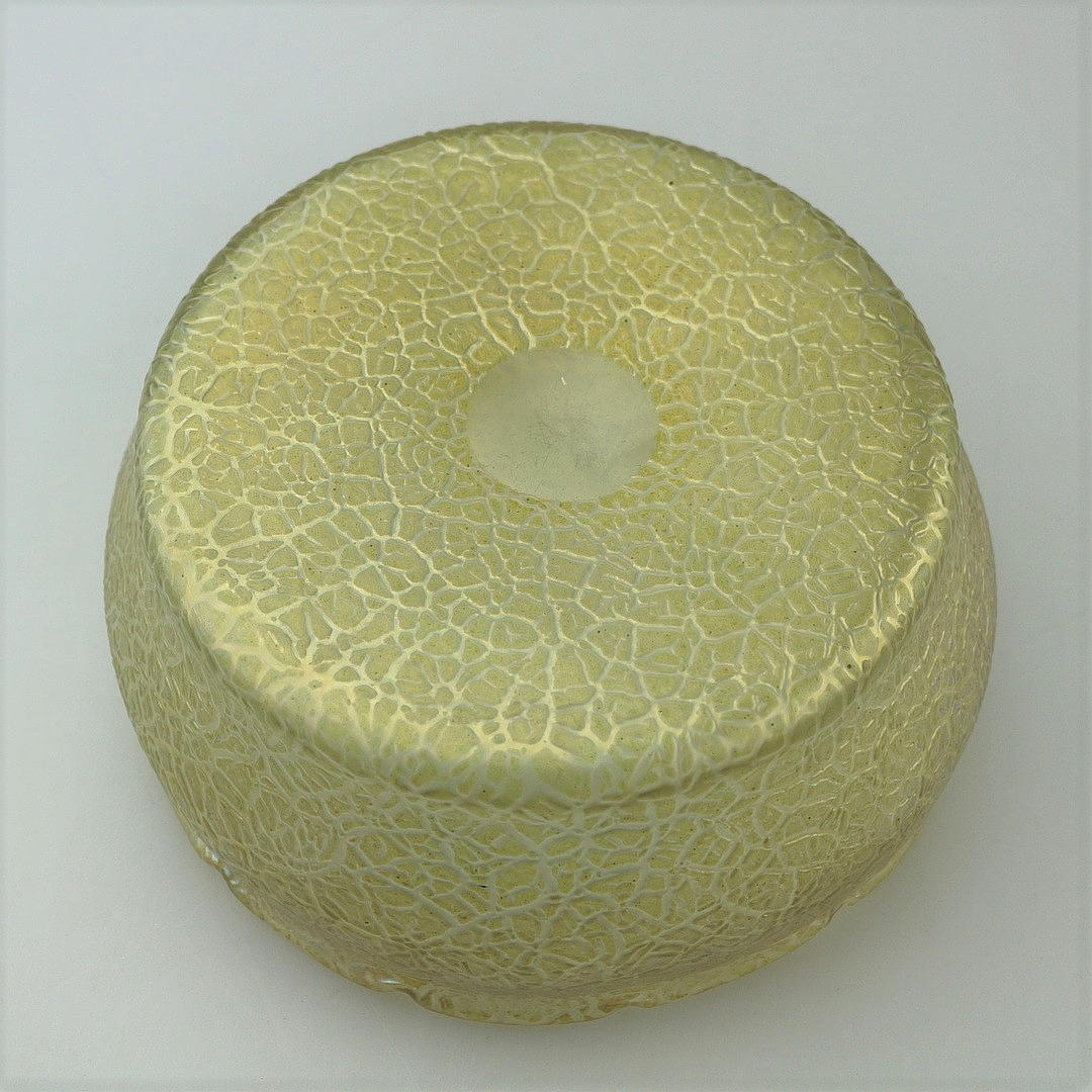 Lötz Glas Schale, Jugendstil, um 1900, mit ausgeschliffenem Abriss, Lüsternetzglasur, Durchmesser: 18,5 cm.