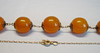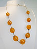 Neun opake, polierte Bernstein-Kugeln sind im Größen-Verlauf angeordnet und durch blütenförmige Silberkappen beidseitig bedeckt.