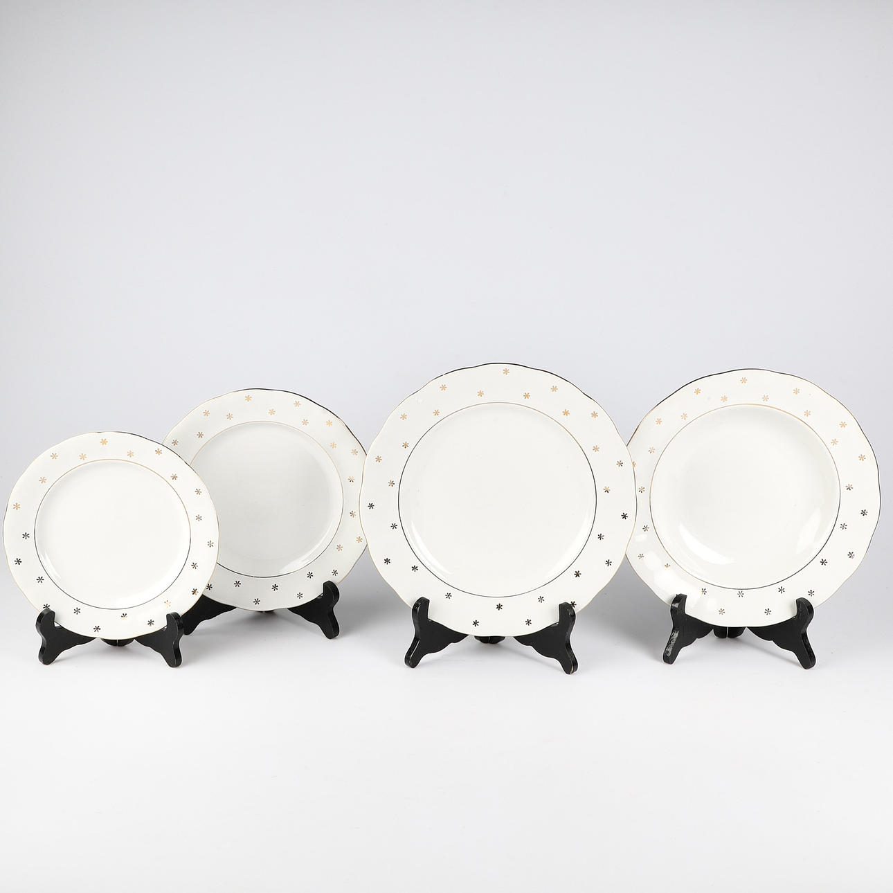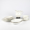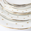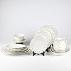 12 Speiseteller 12 tiefe Teller 12 Vorspeisenteller 11 Teller 4 Servierplatten 4 Schüsseln 1 Saucenschüssel 1 Krug.
