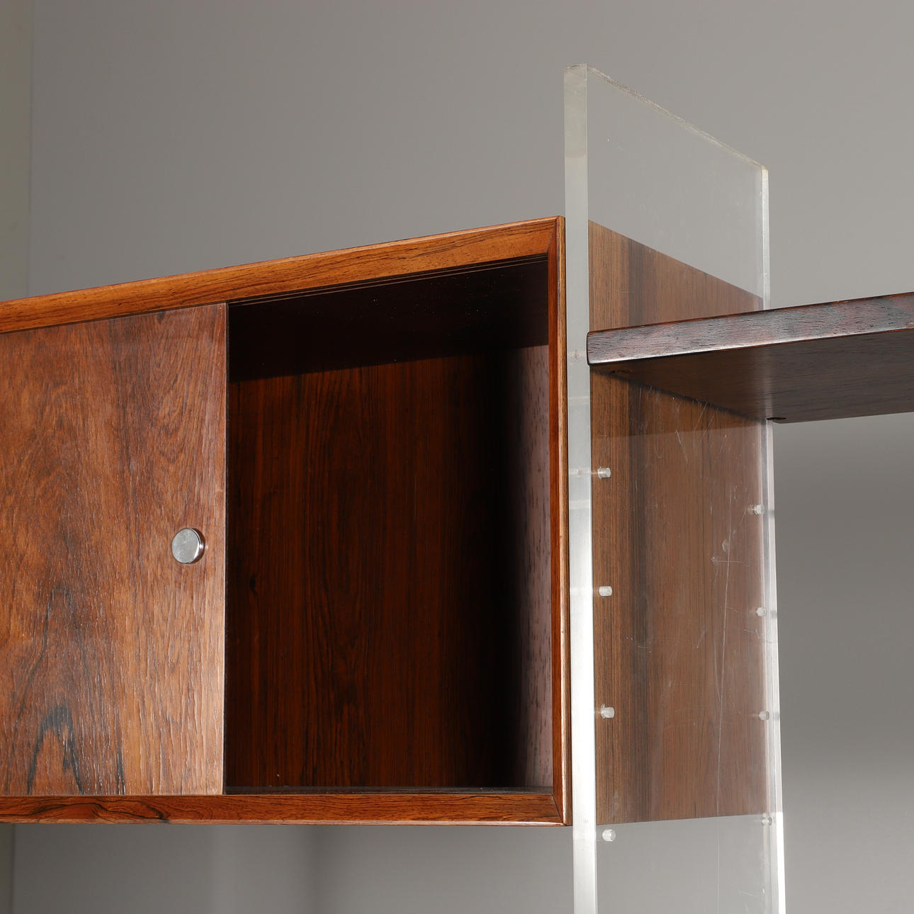 Verschleiß, Magnet fehlt bei 1 Tür und schlechter Halt bei der anderen sowie Furnierschäden und Kratzer.