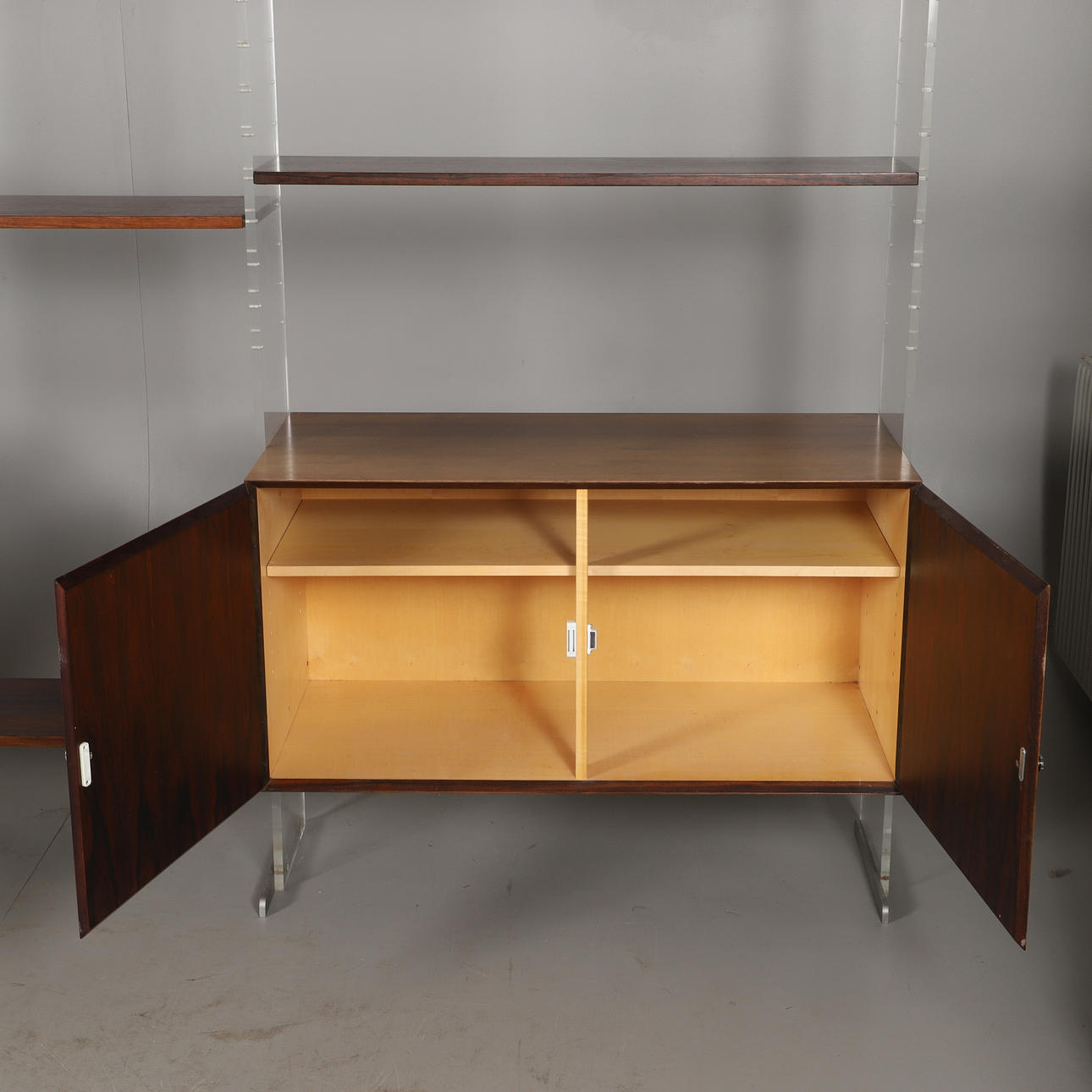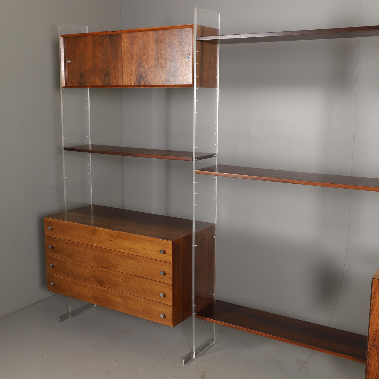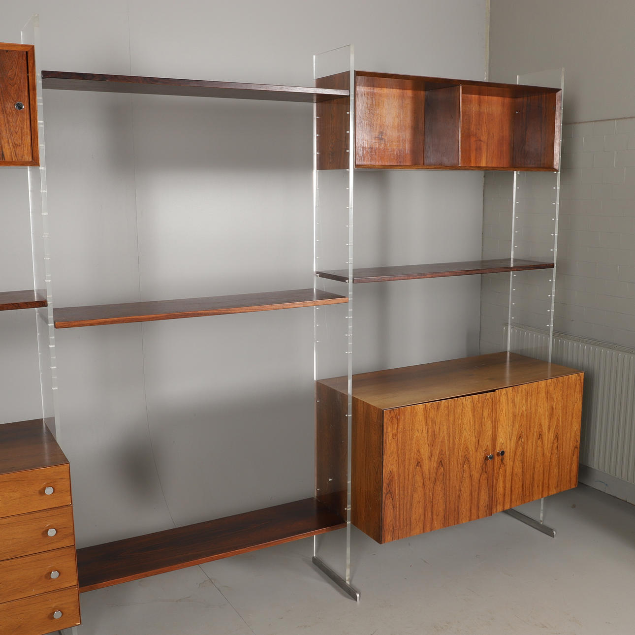 4 Seitenwände Plexiglas 198 x 25 cm 1 Kommode Länge 99, Breite 46, Höhe 50 cm 1 Schrank Länge 99, Breite 46, Höhe 50 cm 2 Schränke Länge 99, Breite 26, Höhe 33 cm 5 Einlegeböden Länge 99, Breite 26