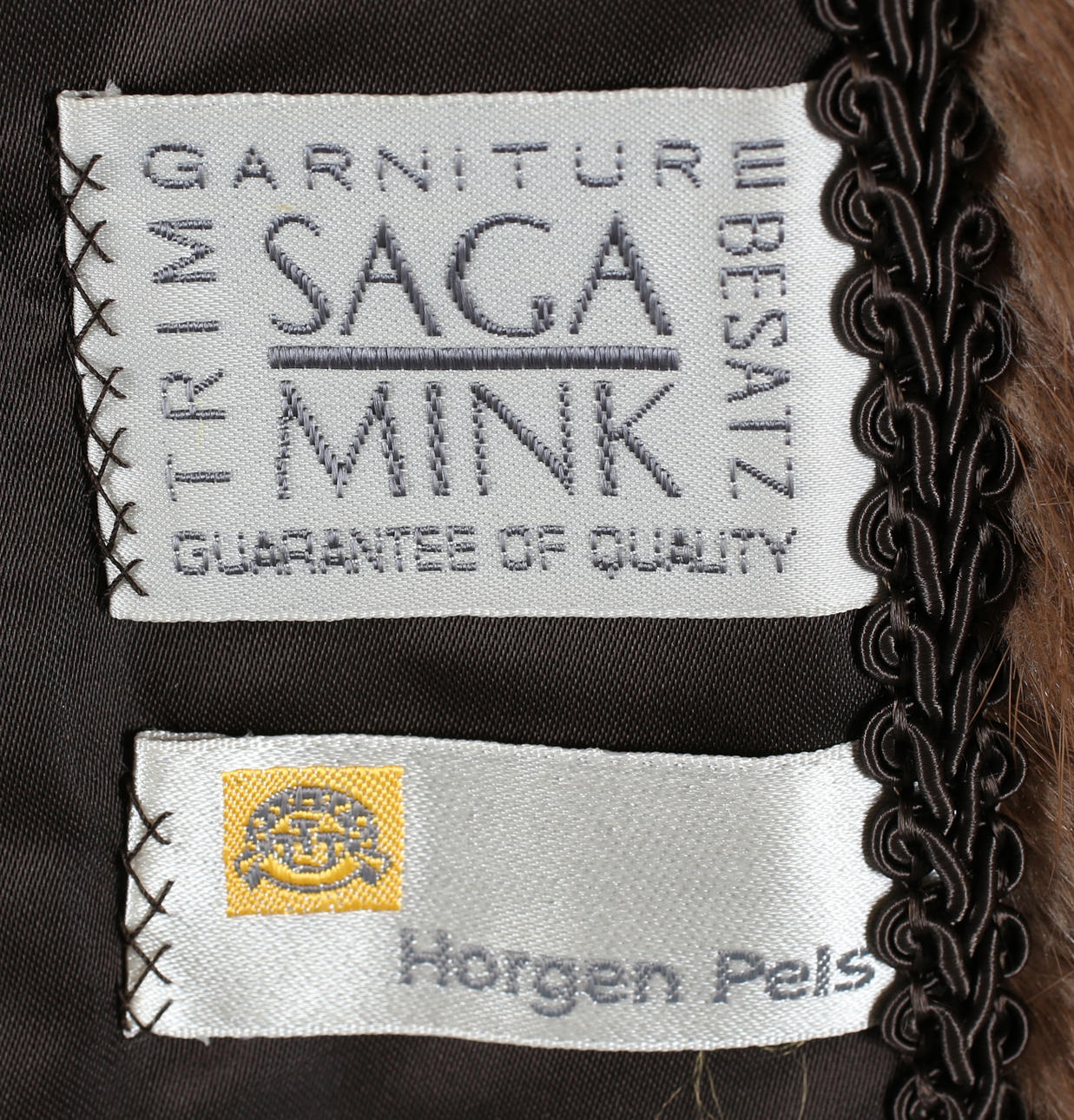 Mit Haken. Stofflabel "Saga Mink" und "Horgen Pels".