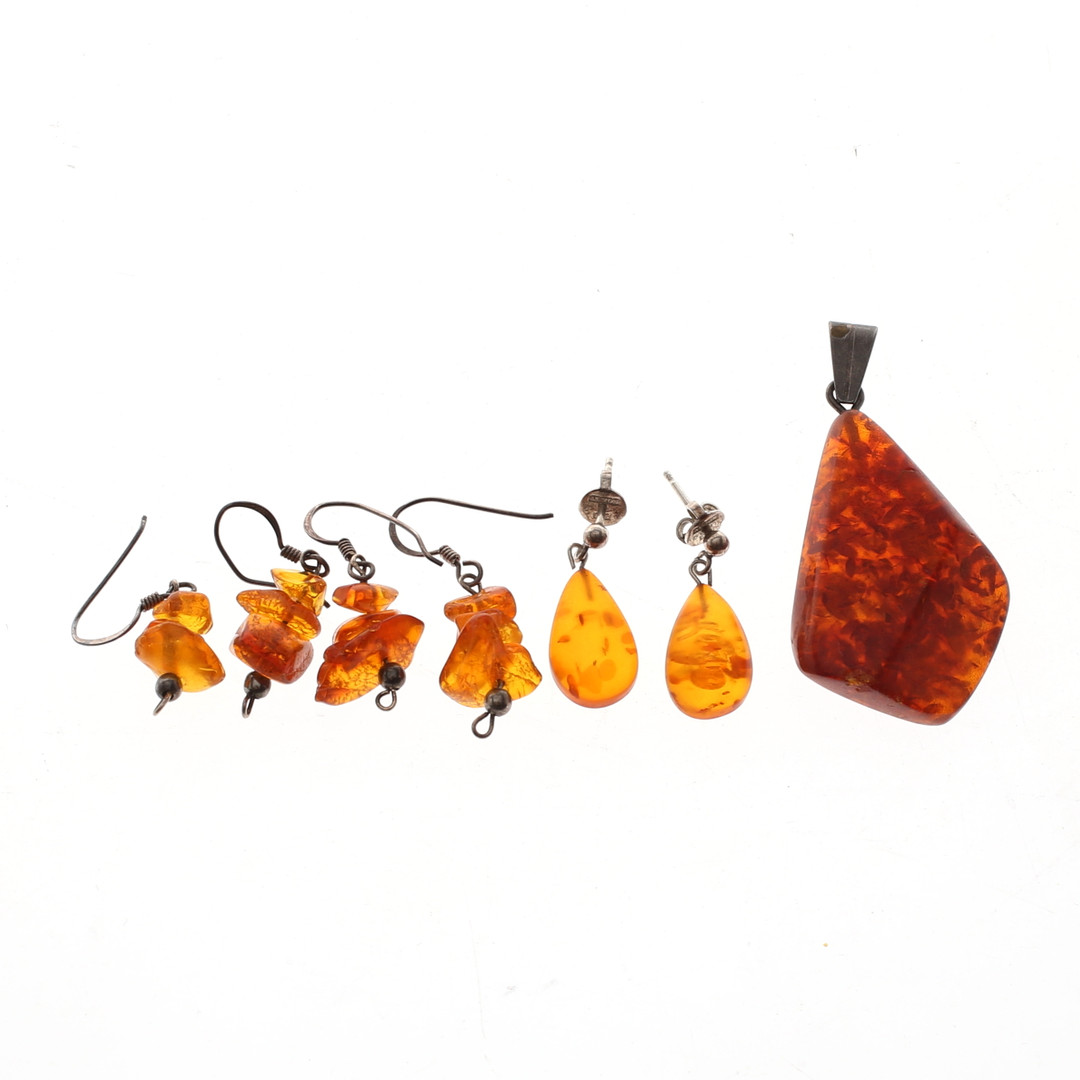 1424214. ANHÄNGER und OHRRING, Bernstein, 1900er.