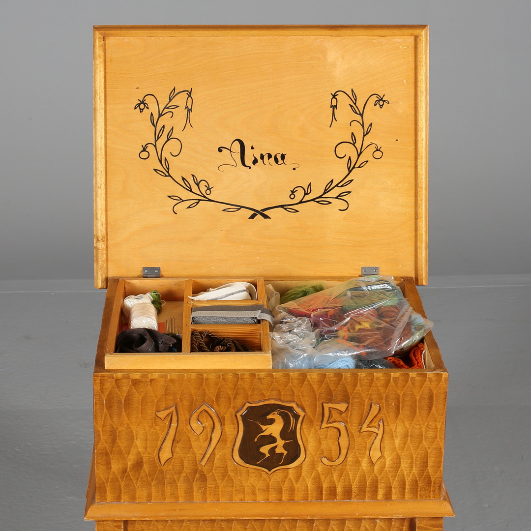1426606. SYSCRIN auf Bein, Holz, datiert 1954.