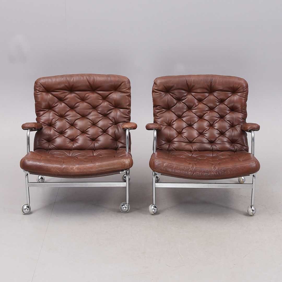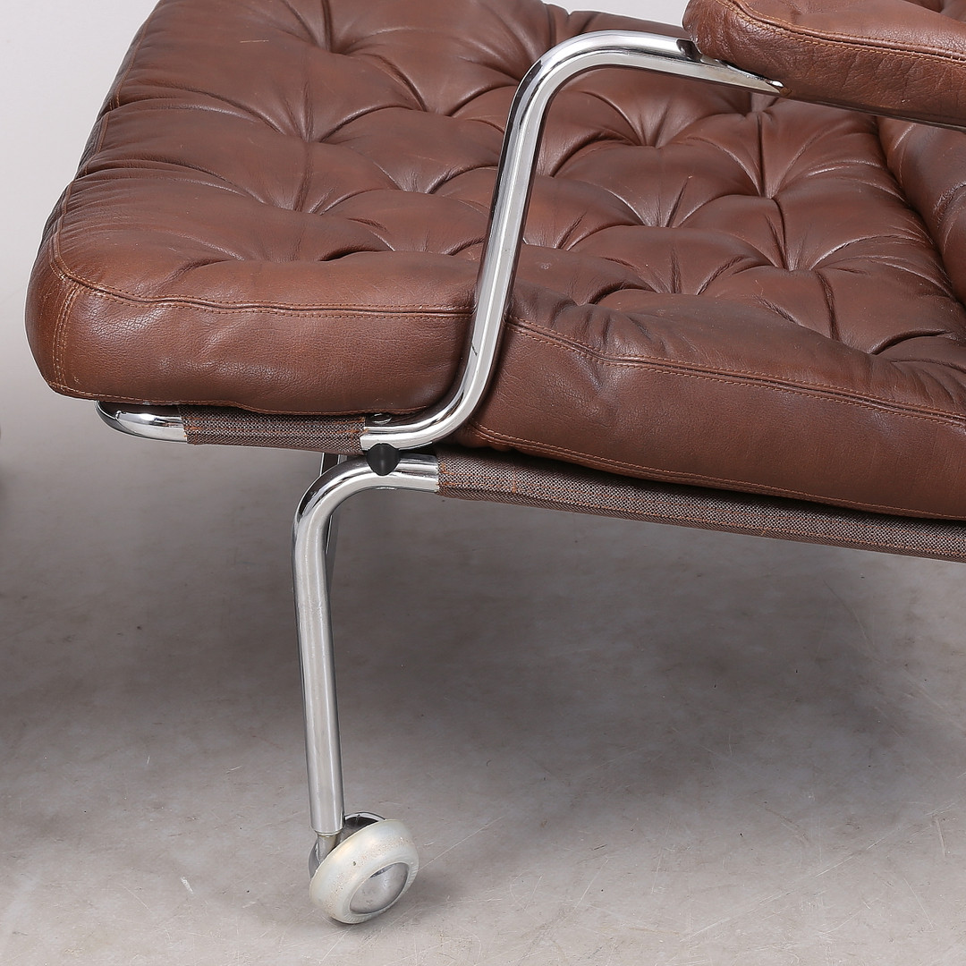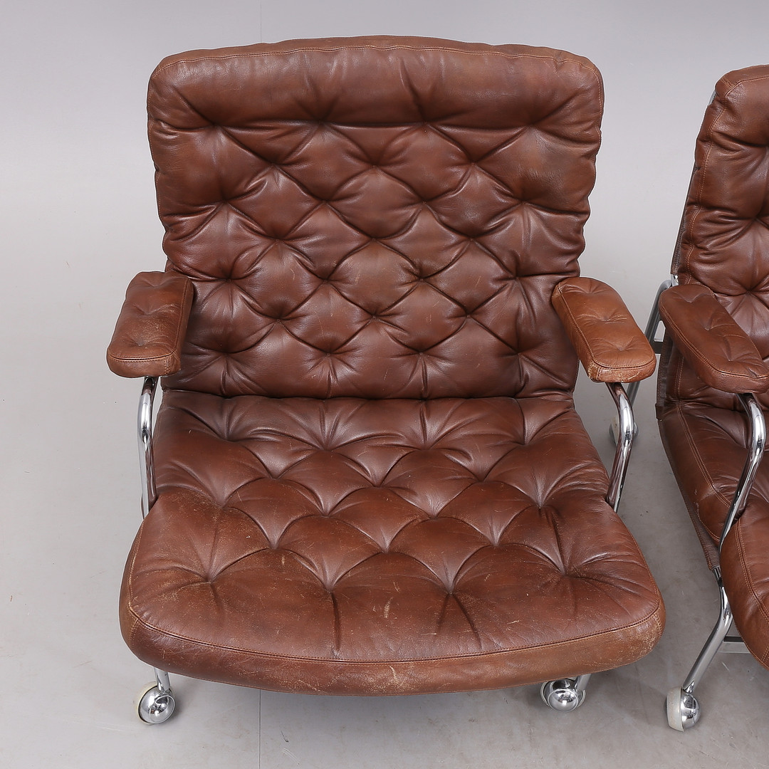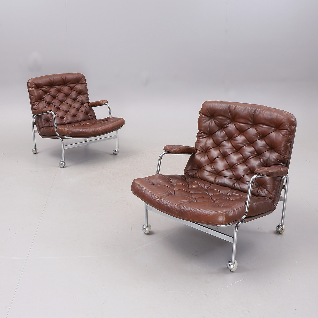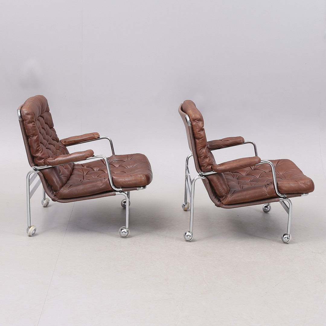 1431399. BRUNO MATHSSON. "Karin", Sessel, 1 Paar, Chrom/Leder.