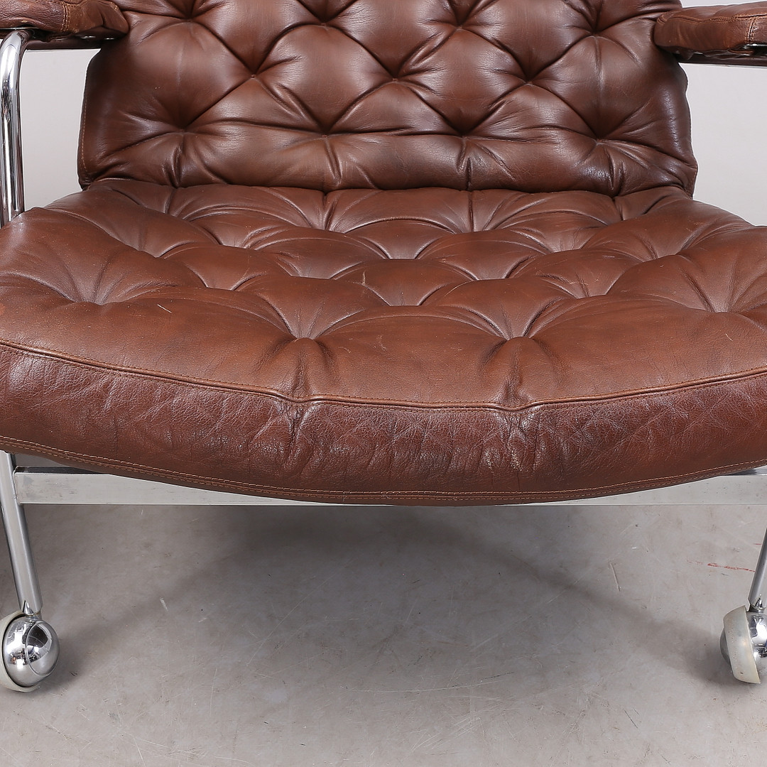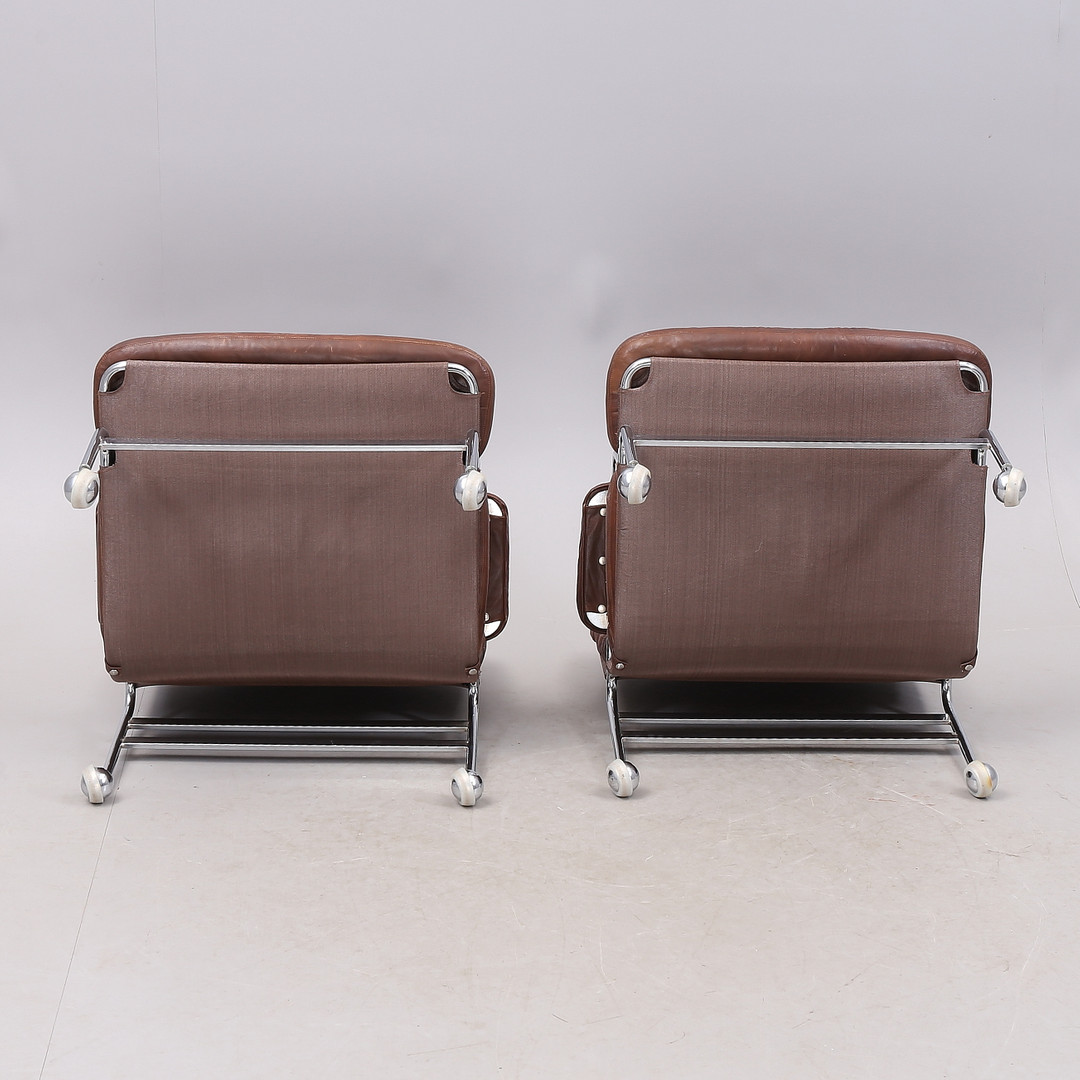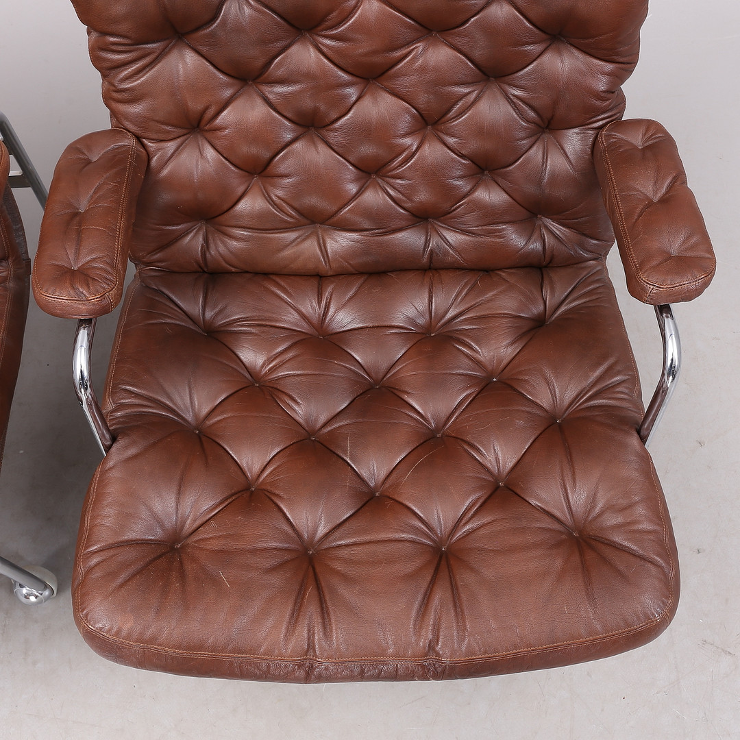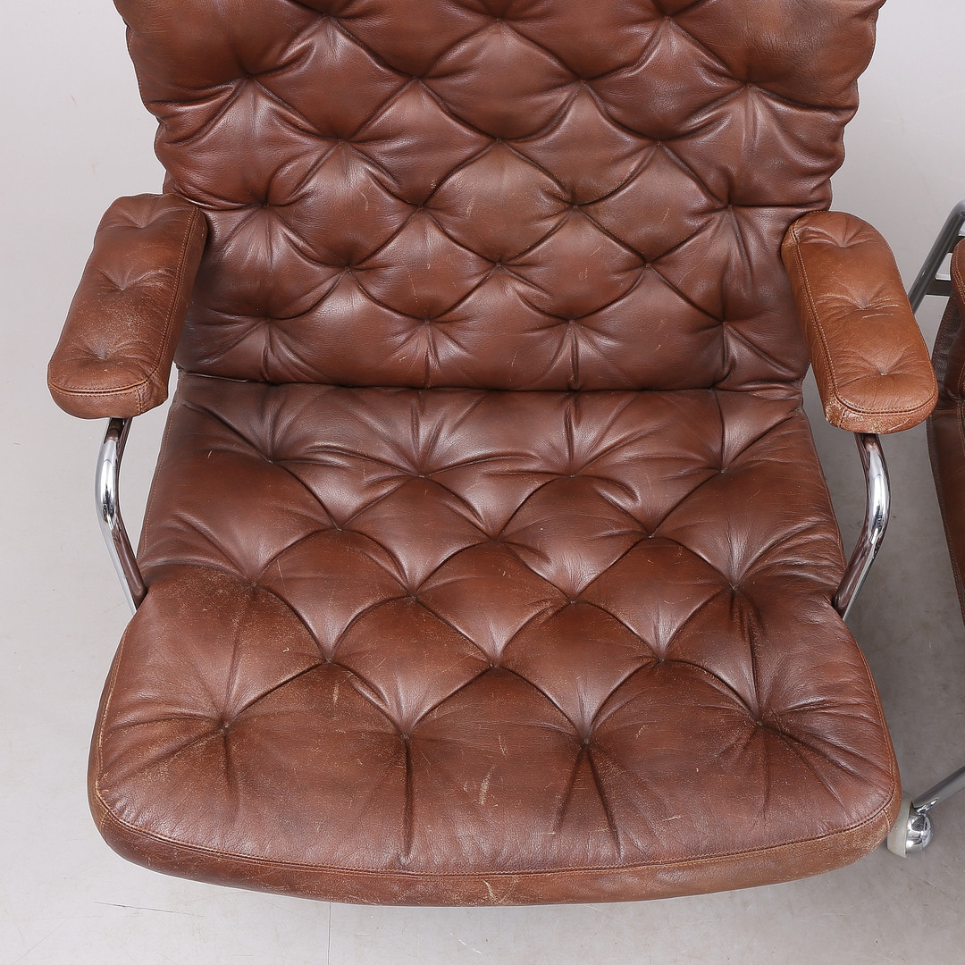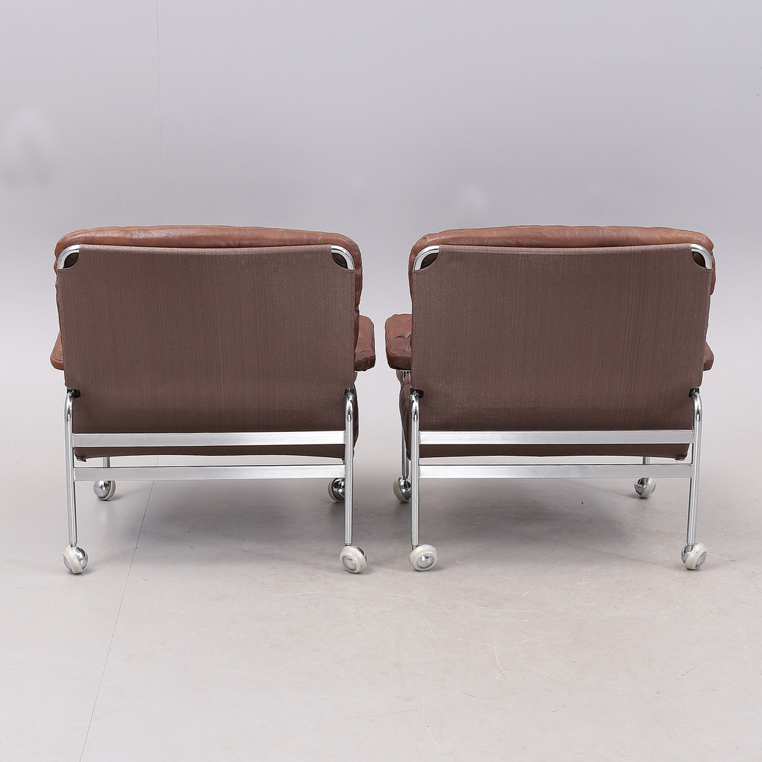 1431399. BRUNO MATHSSON. "Karin", Sessel, 1 Paar, Chrom/Leder.