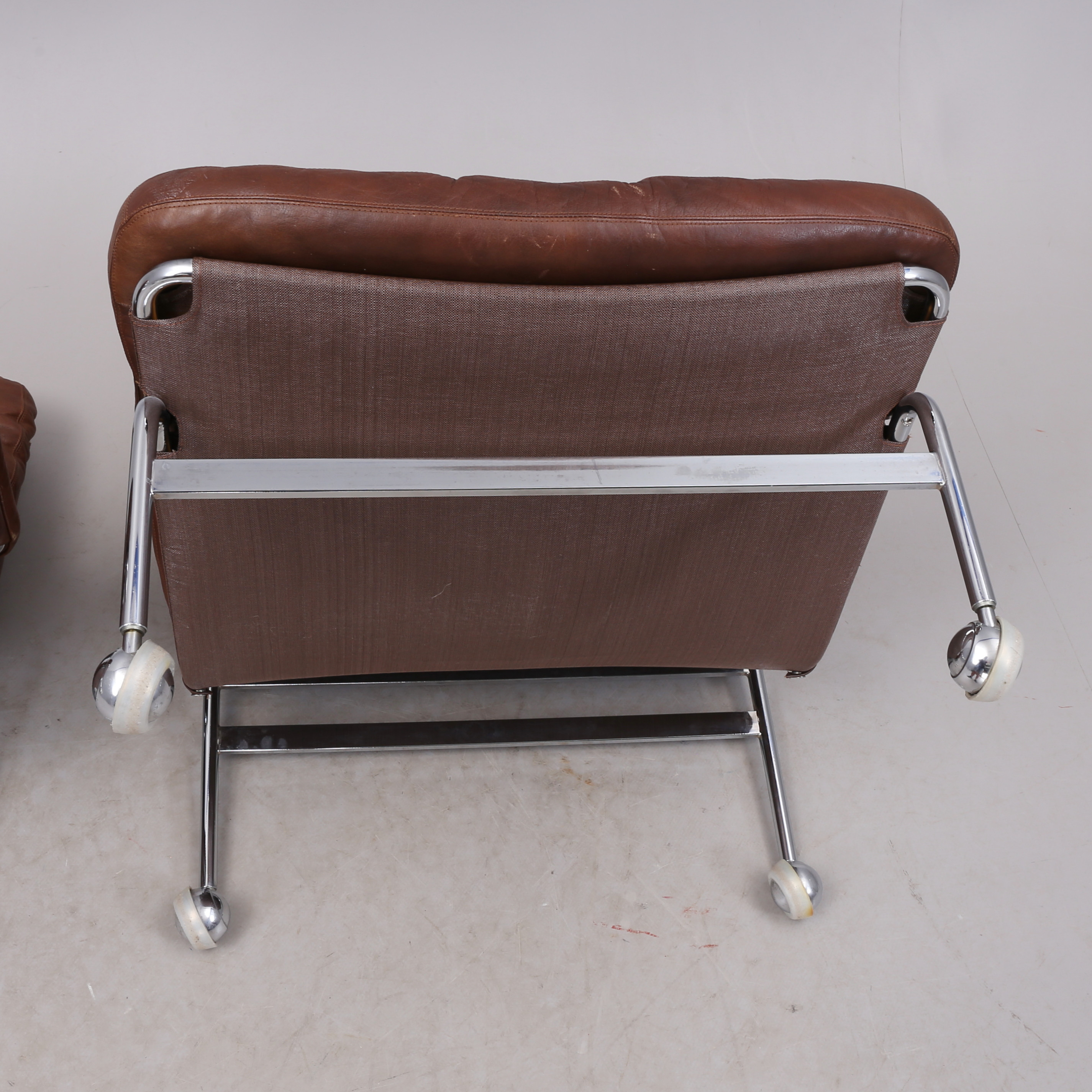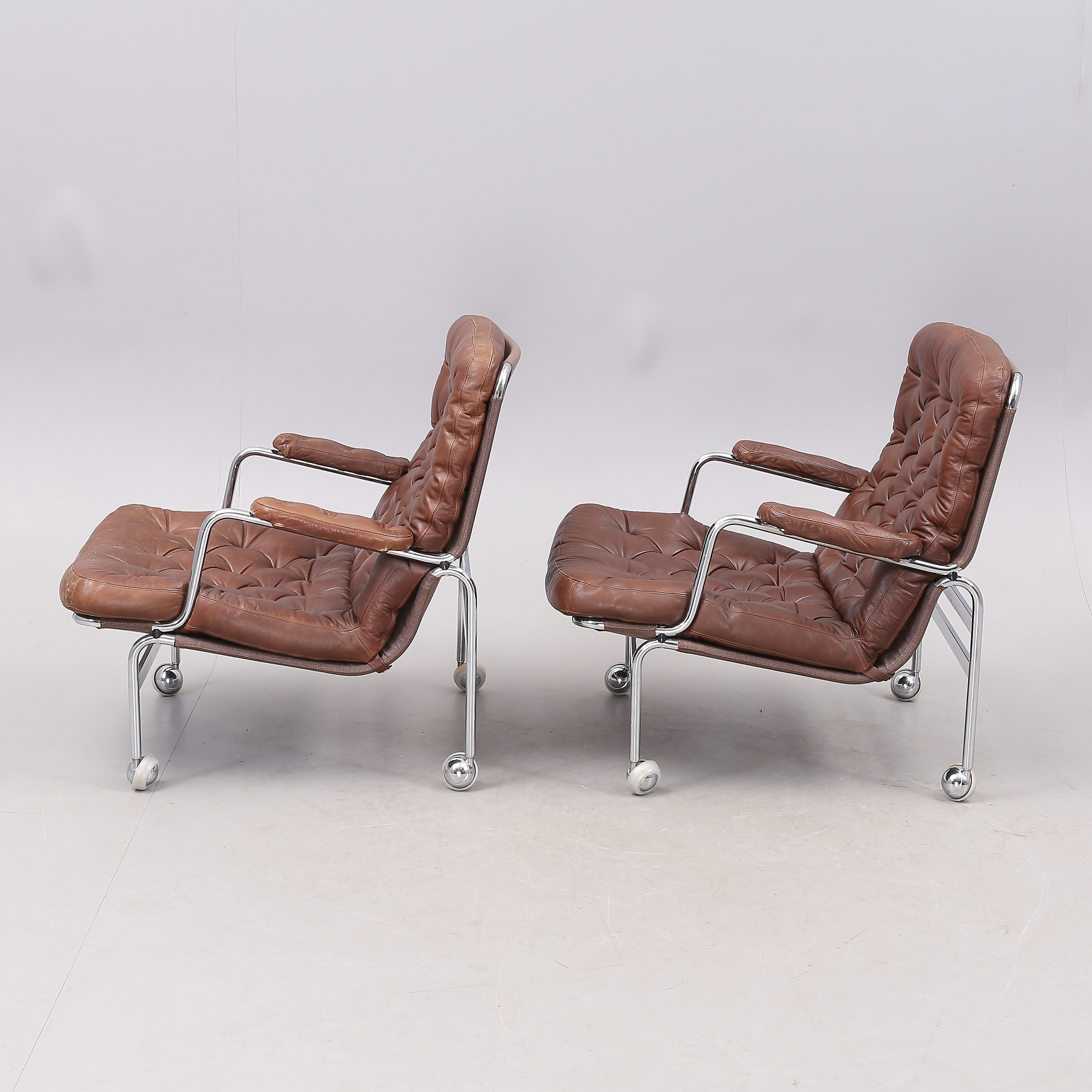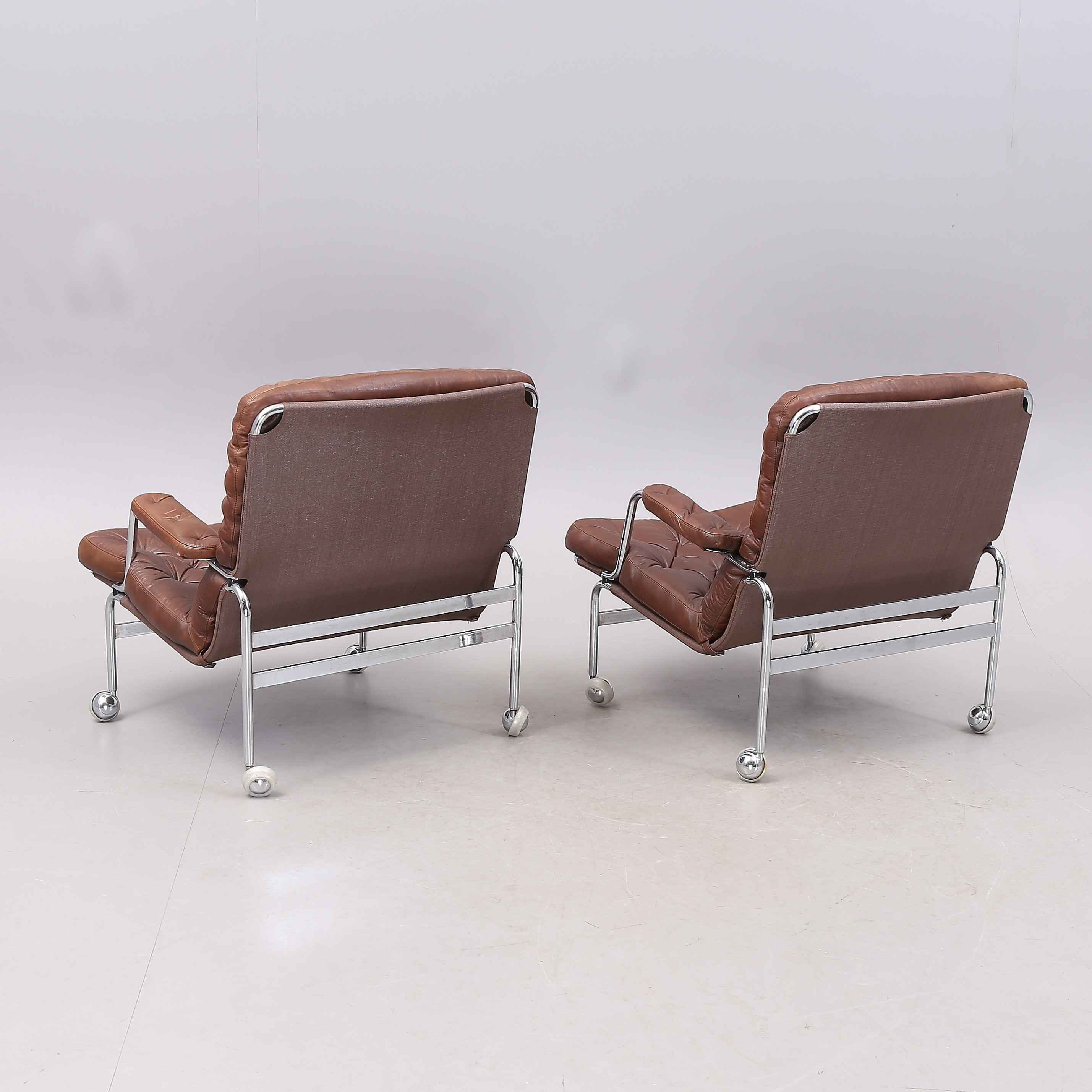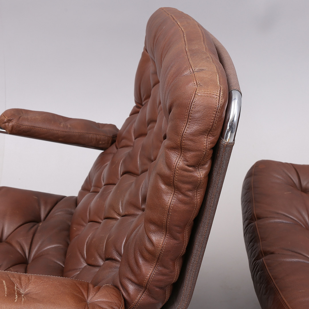 1431399. BRUNO MATHSSON. "Karin", Sessel, 1 Paar, Chrom/Leder.