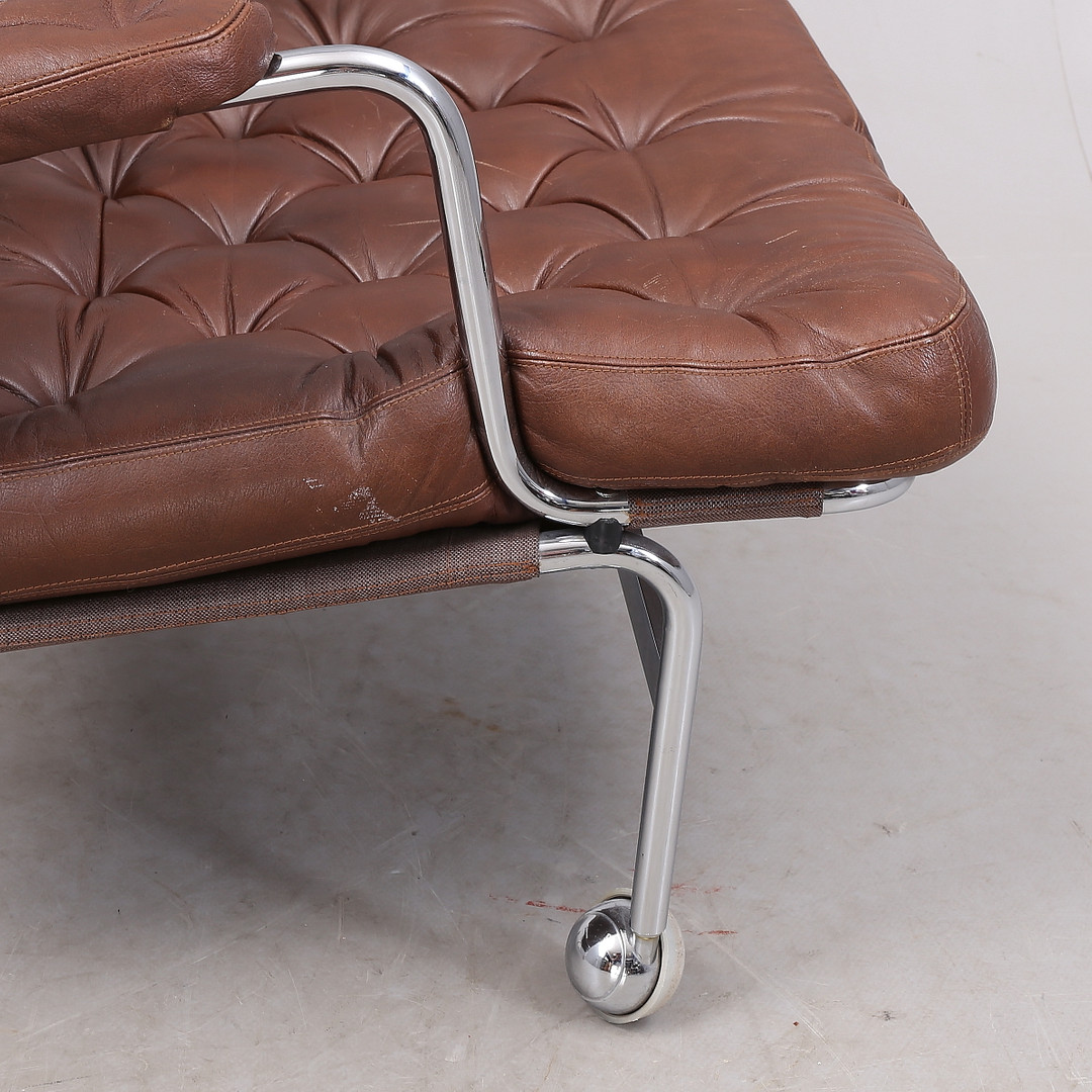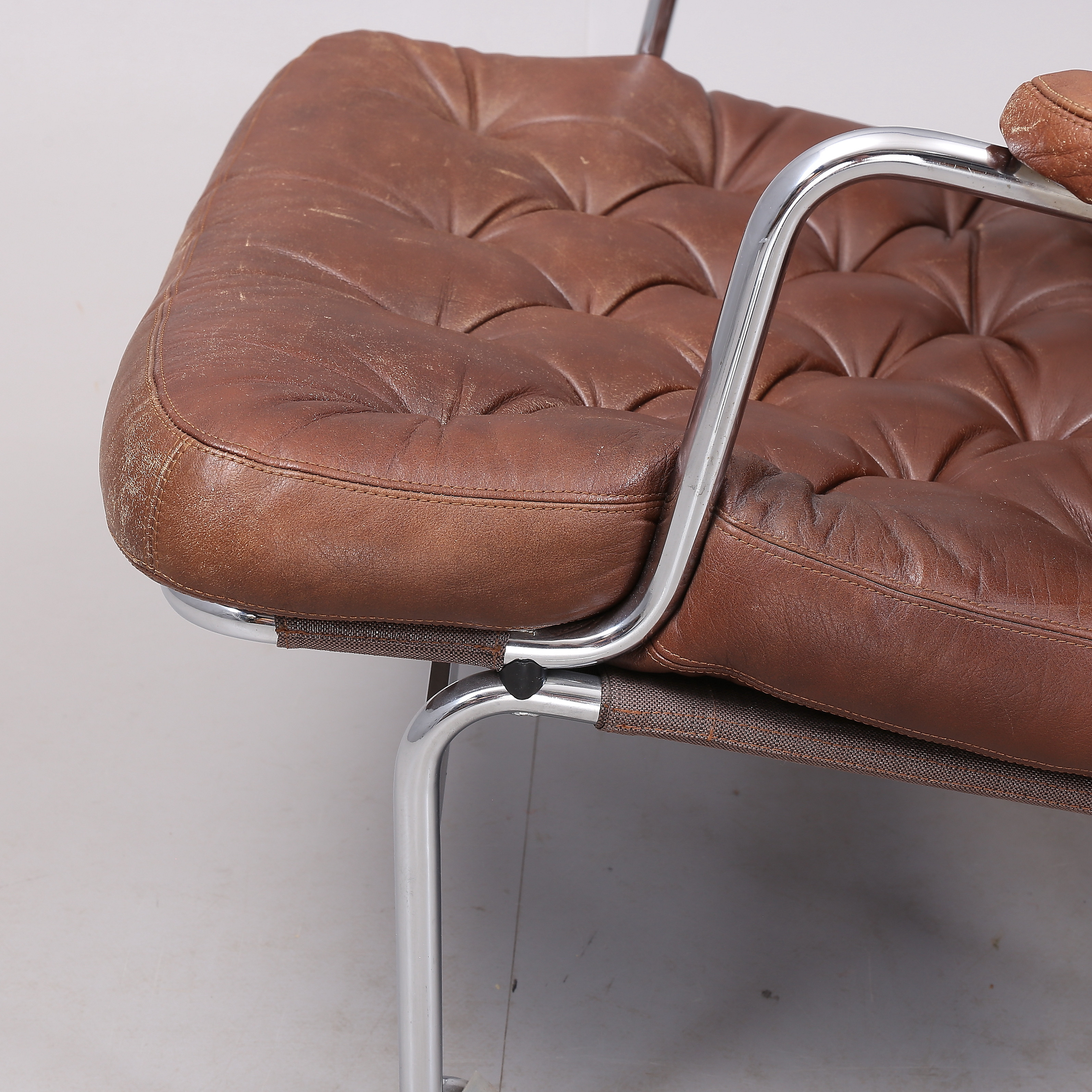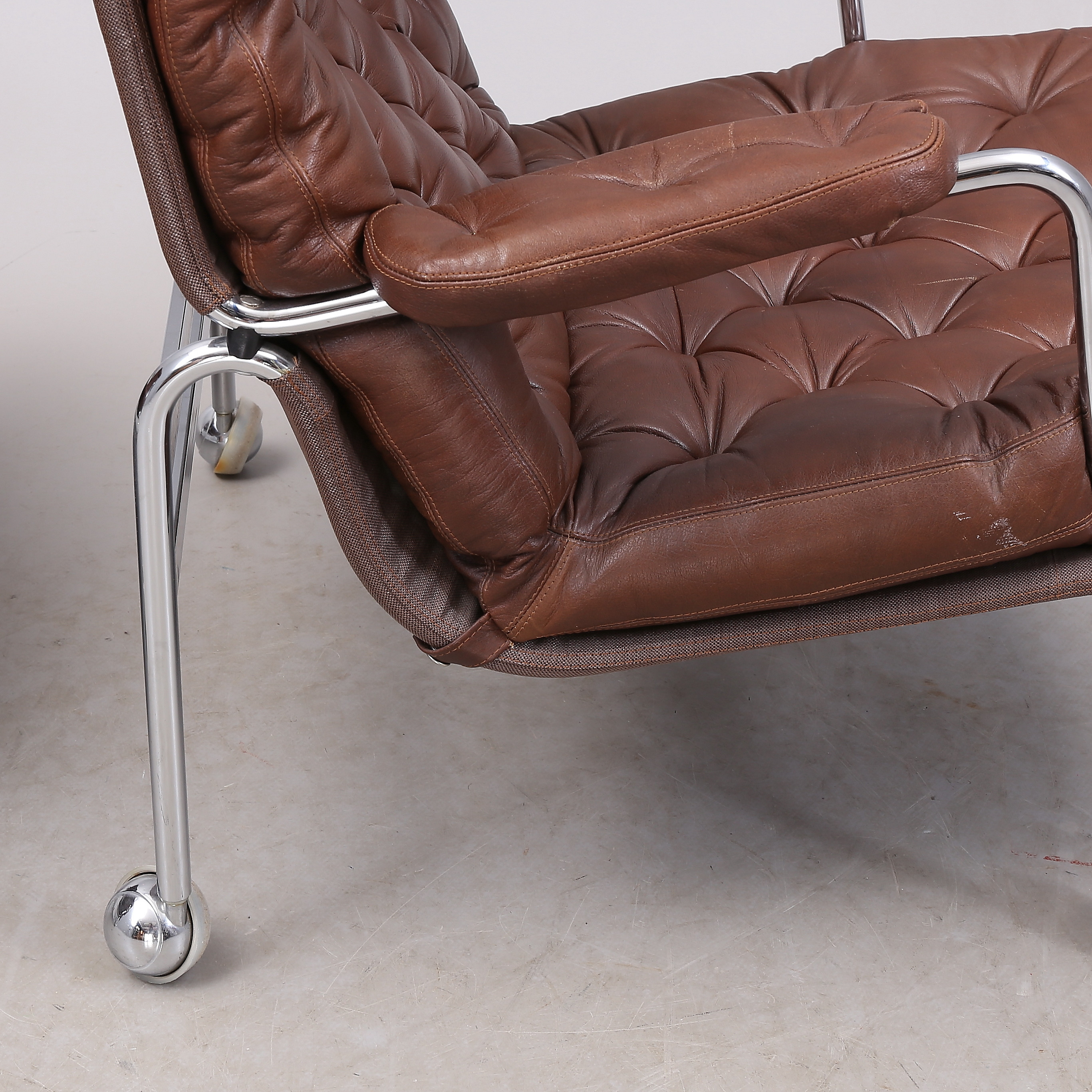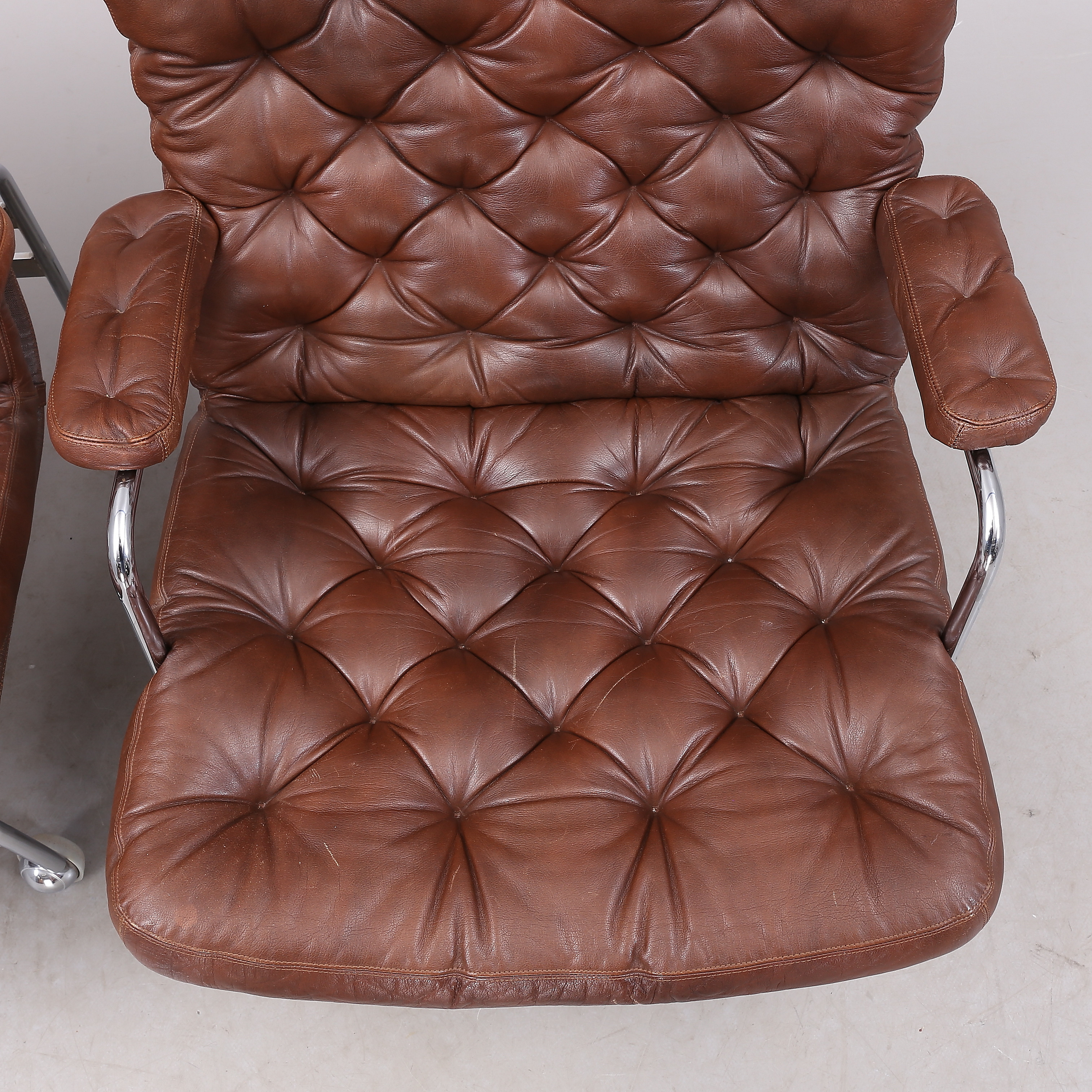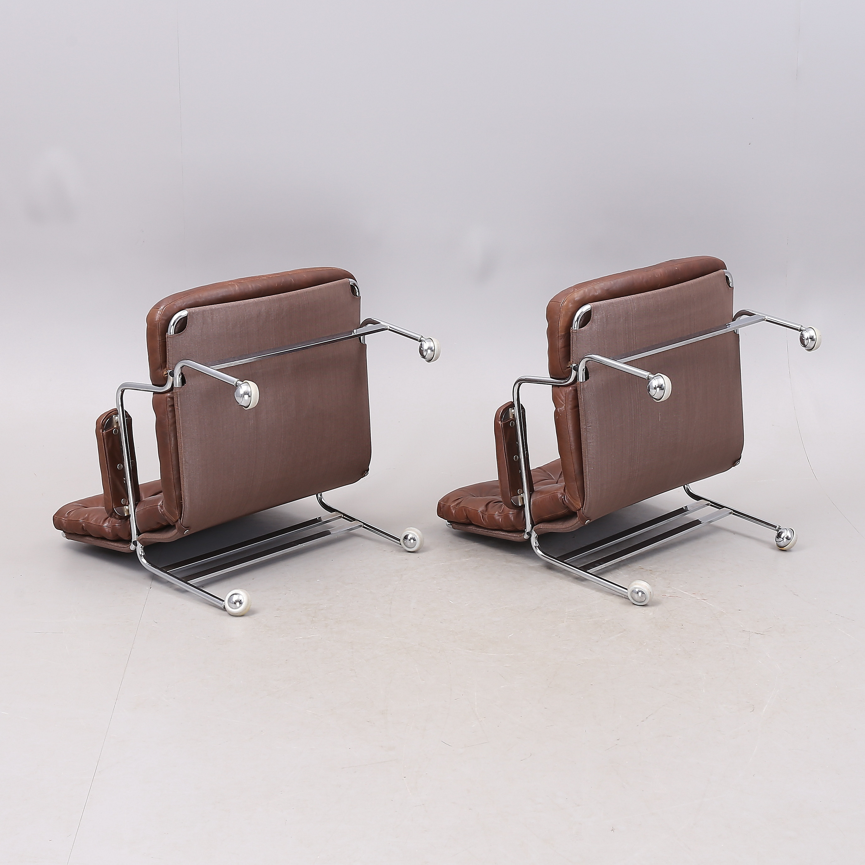 1431399. BRUNO MATHSSON. "Karin", Sessel, 1 Paar, Chrom/Leder.