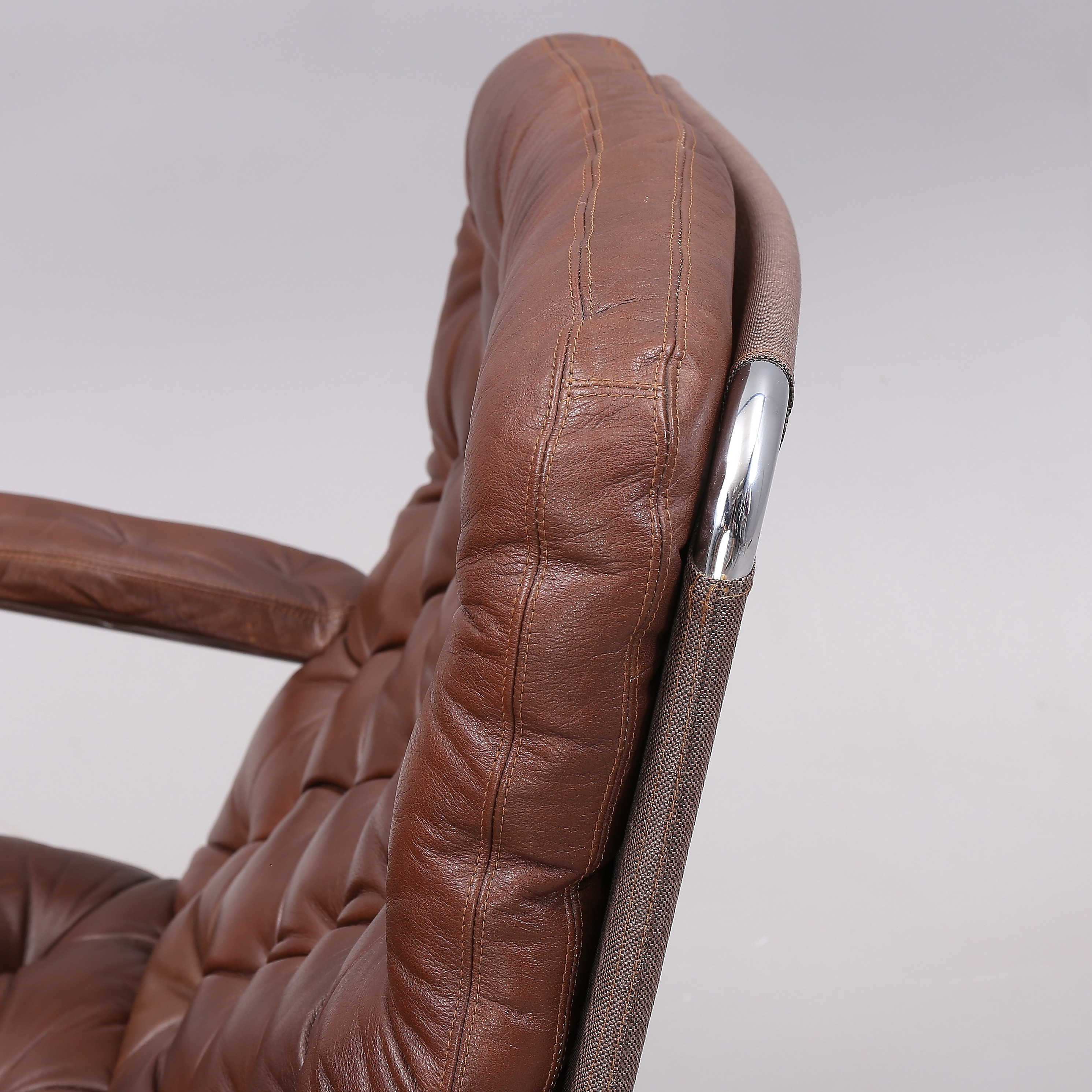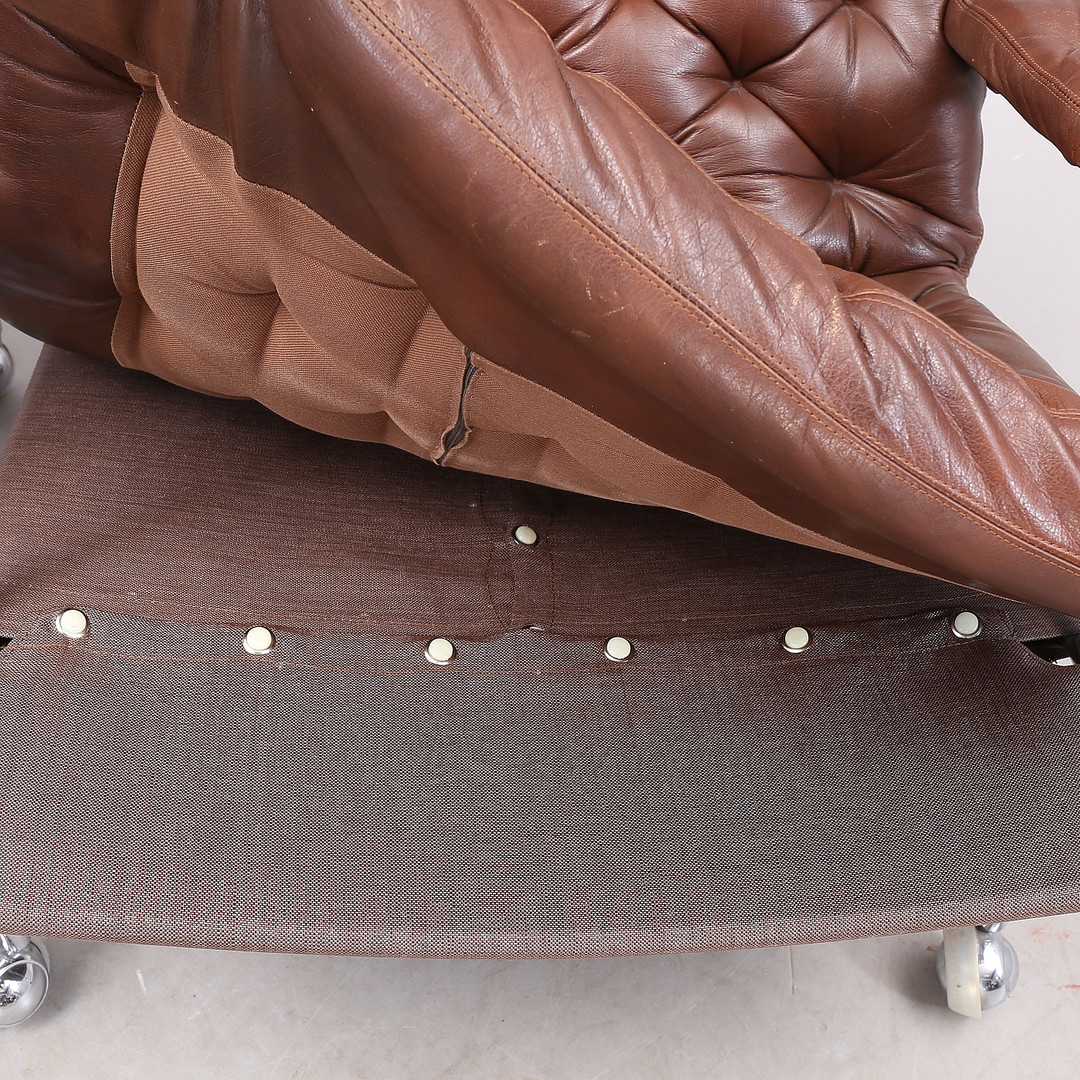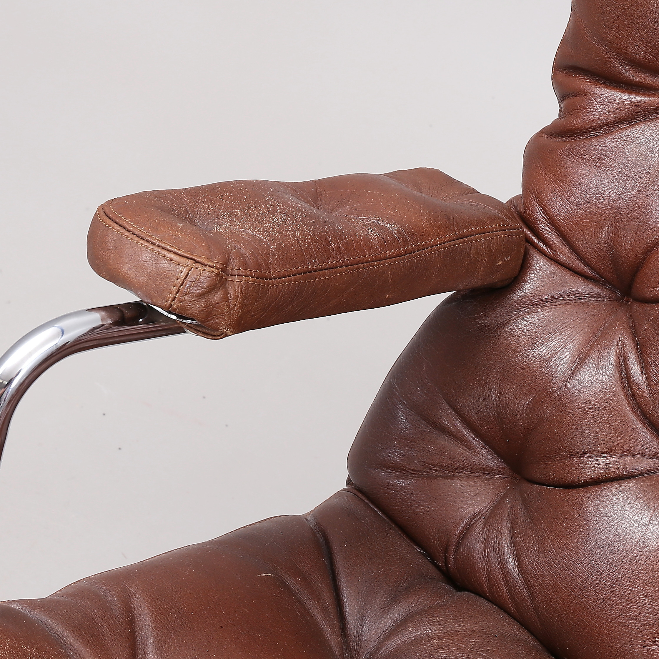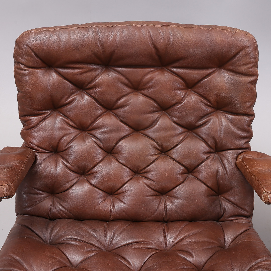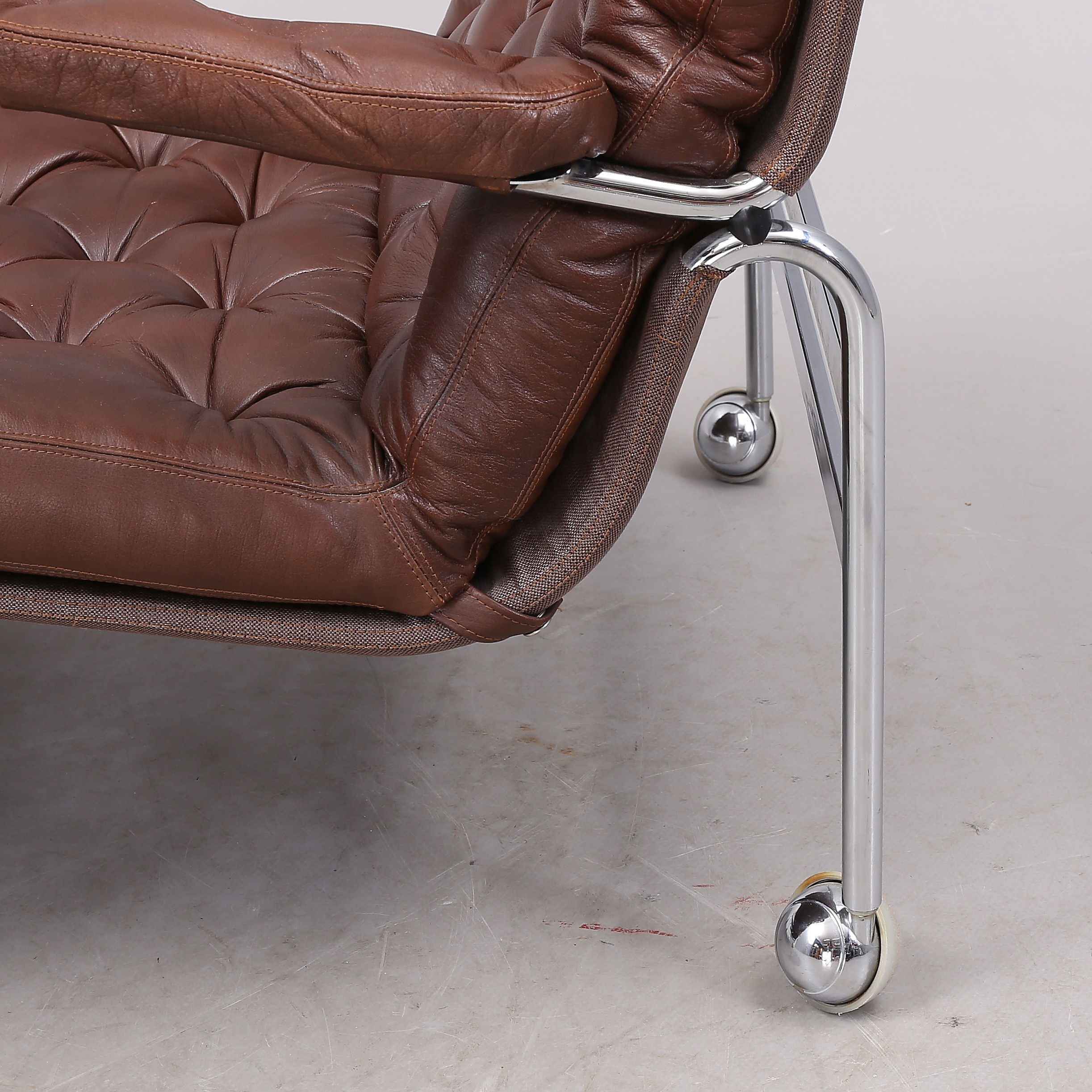 1431399. BRUNO MATHSSON. "Karin", Sessel, 1 Paar, Chrom/Leder.
