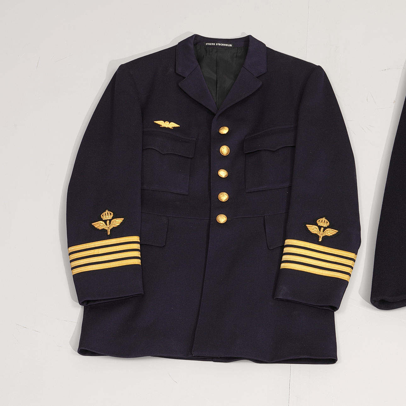 Schwedische Uniform bestehend aus Wappen und Wappen.