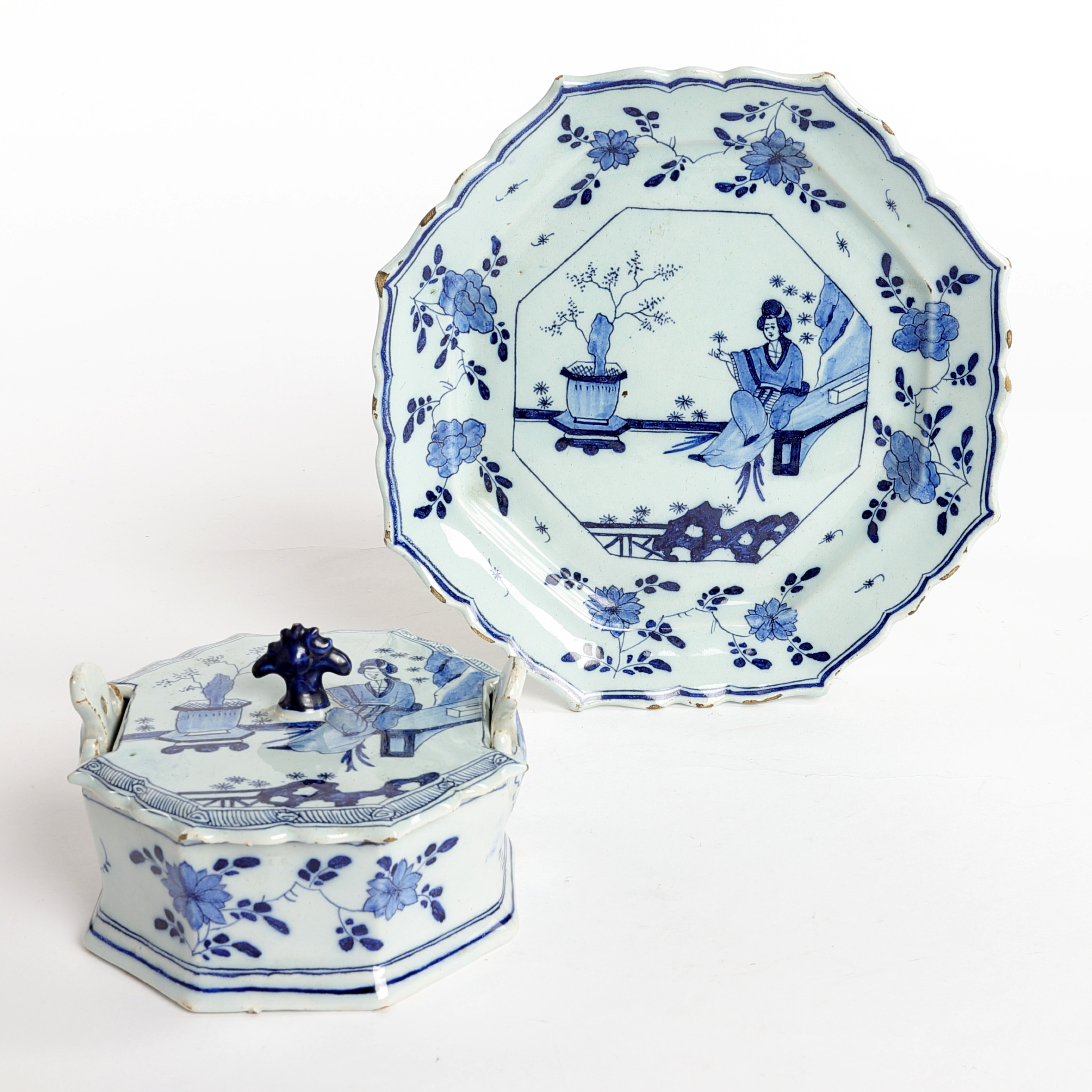 1440971. BUTTERDOSE mit Deckel und Schale, Delft, Holland.