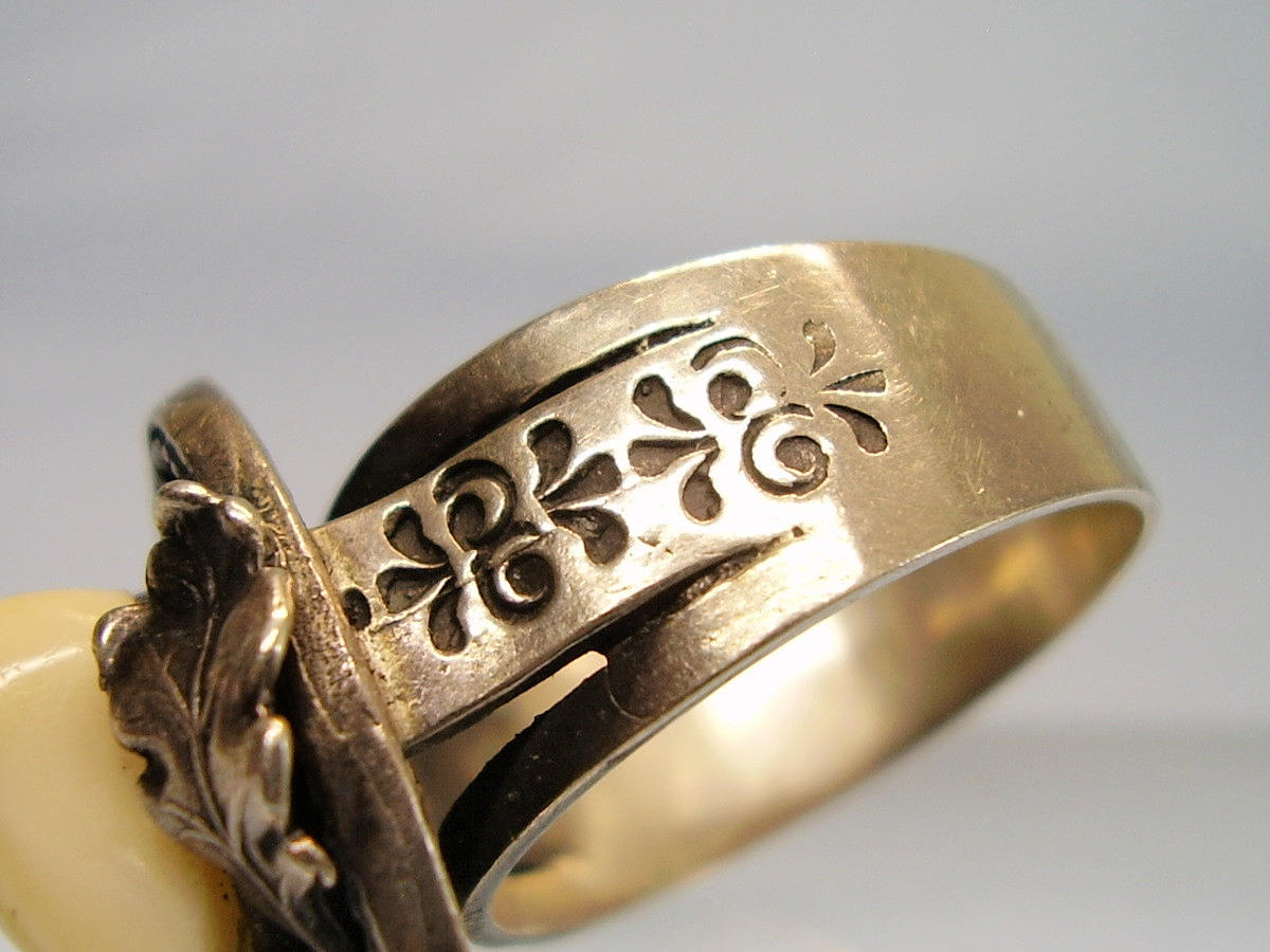 Die breite Ring-Schiene ist im Bereich der Ringschultern ornamental von Hand graviert.