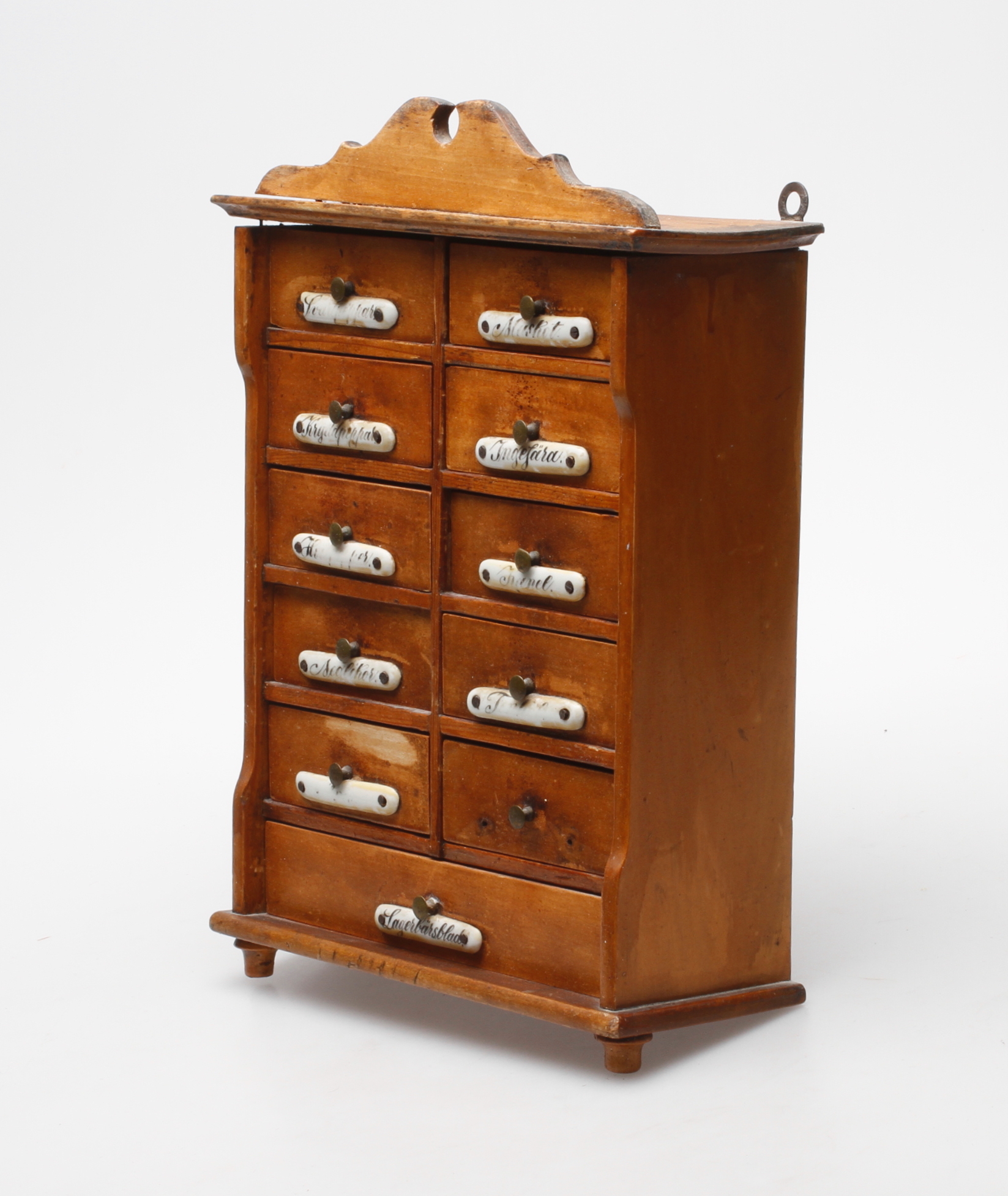 144987. GEWÜRZSCHRANK, Holz, um 1900.