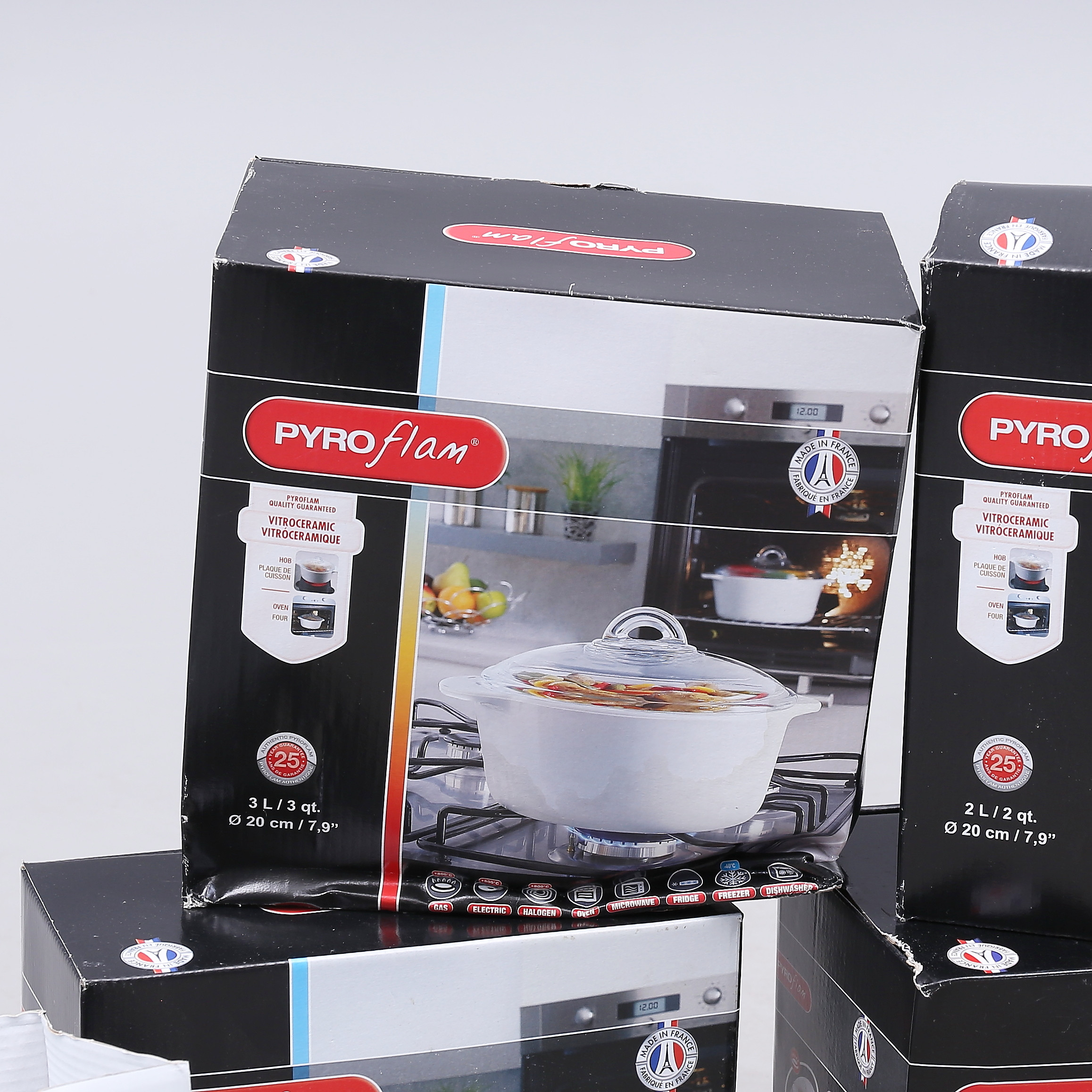1450551. FEUERFESTE TÖPFE und Einsatz, 5 Teile, Pyroflame.