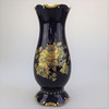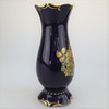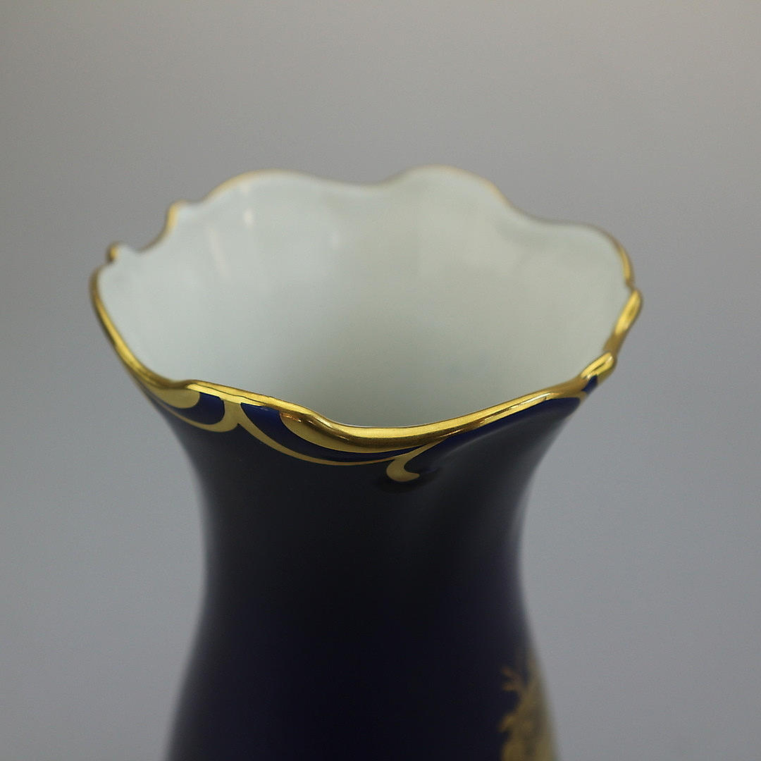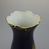 Große Pirkenhammer Vase in kobaltblau, mit Goldrändern am Hals und Fuß,filigranes goldenes Blumenbukett auf der Vorderseite Höhe: 26 cm.