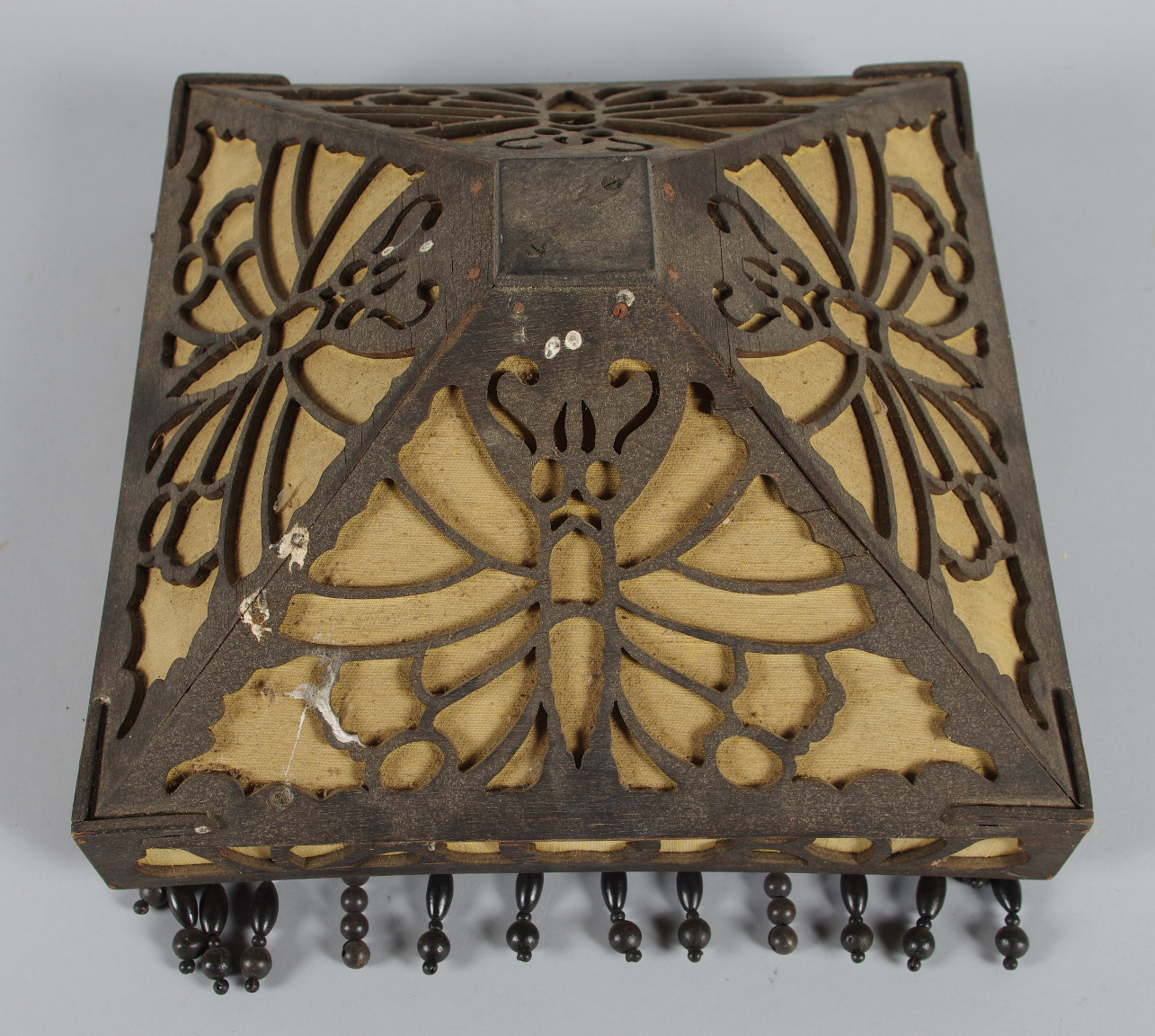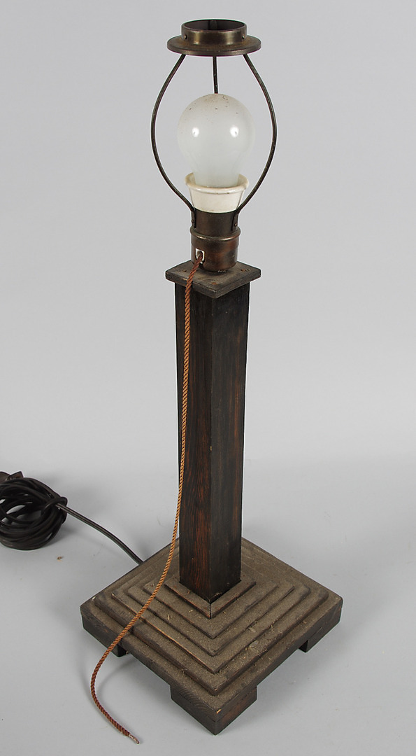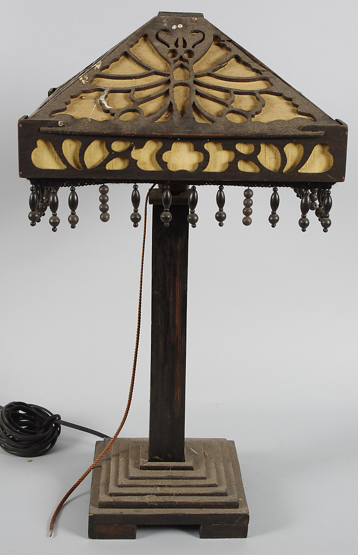 145238. TISCHLAMPE, Holz / Stoff, Jugendstil.