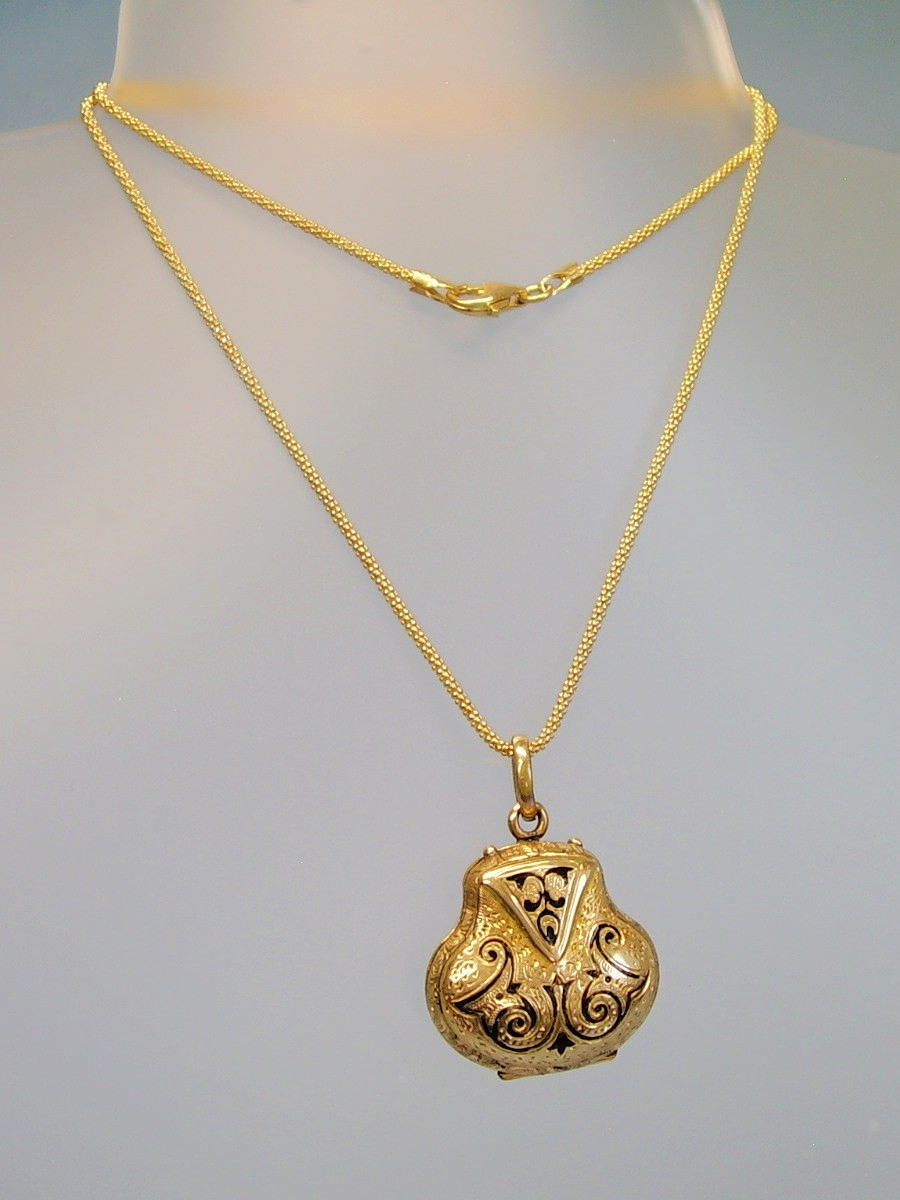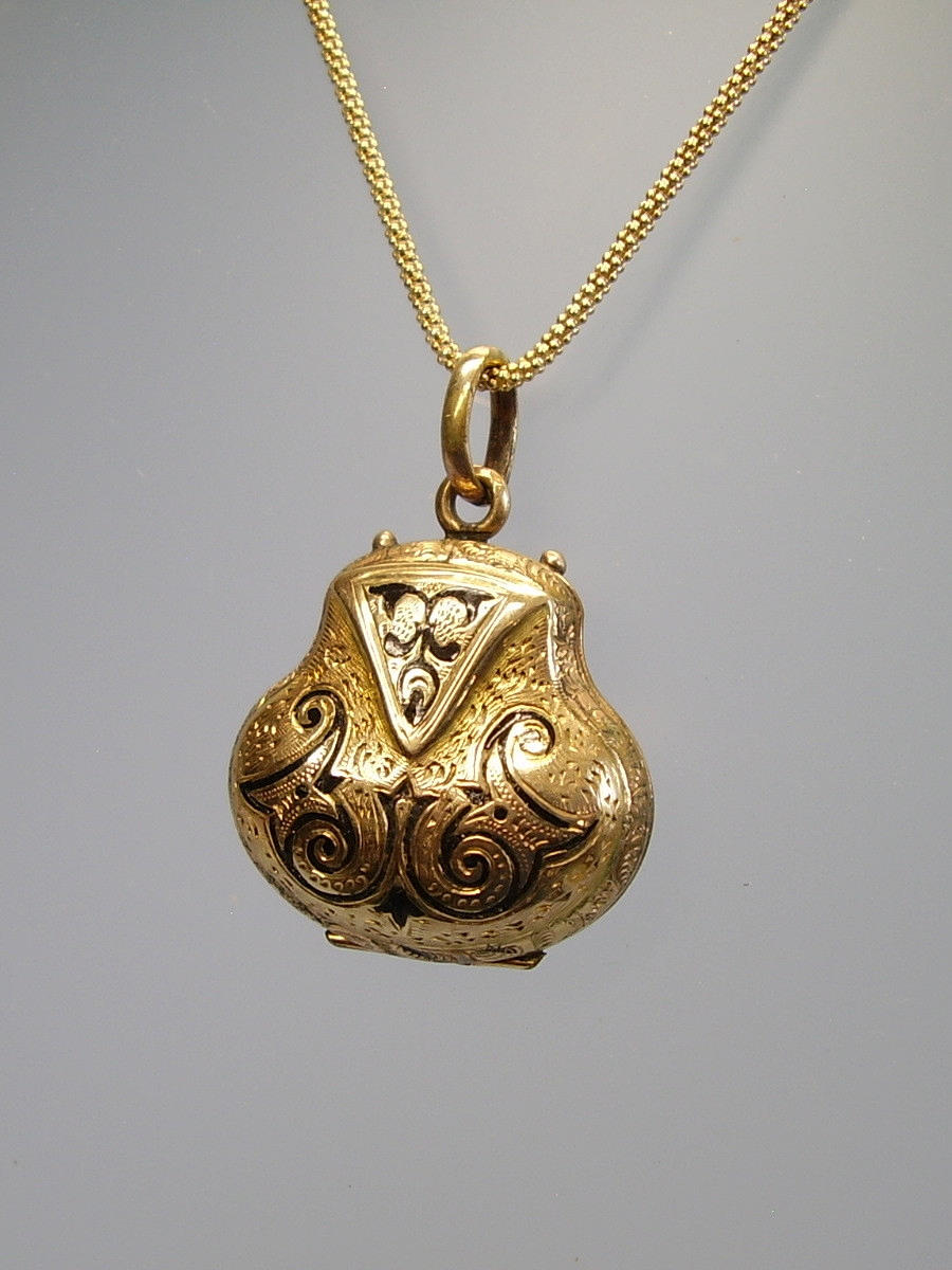 Der antike victorianische Anhänger ist in Schaumgold/Golddoublé in sehr gut erhaltener 8-karätiger Gelbgold-Vergoldung ausgeführt.