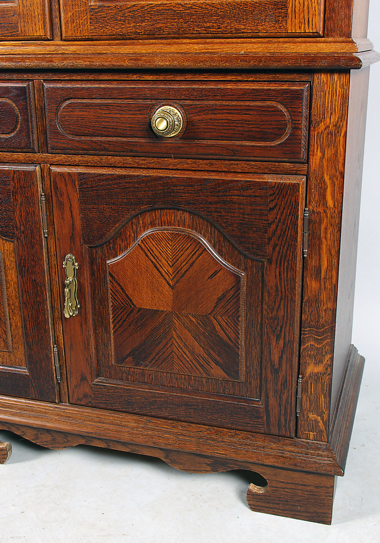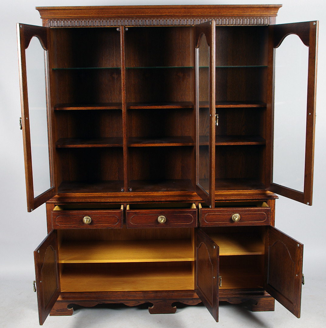 145608. SCHRANK MIT VITRINENAUFSATZ, Eiche, spätes 20. Jahrhundert.