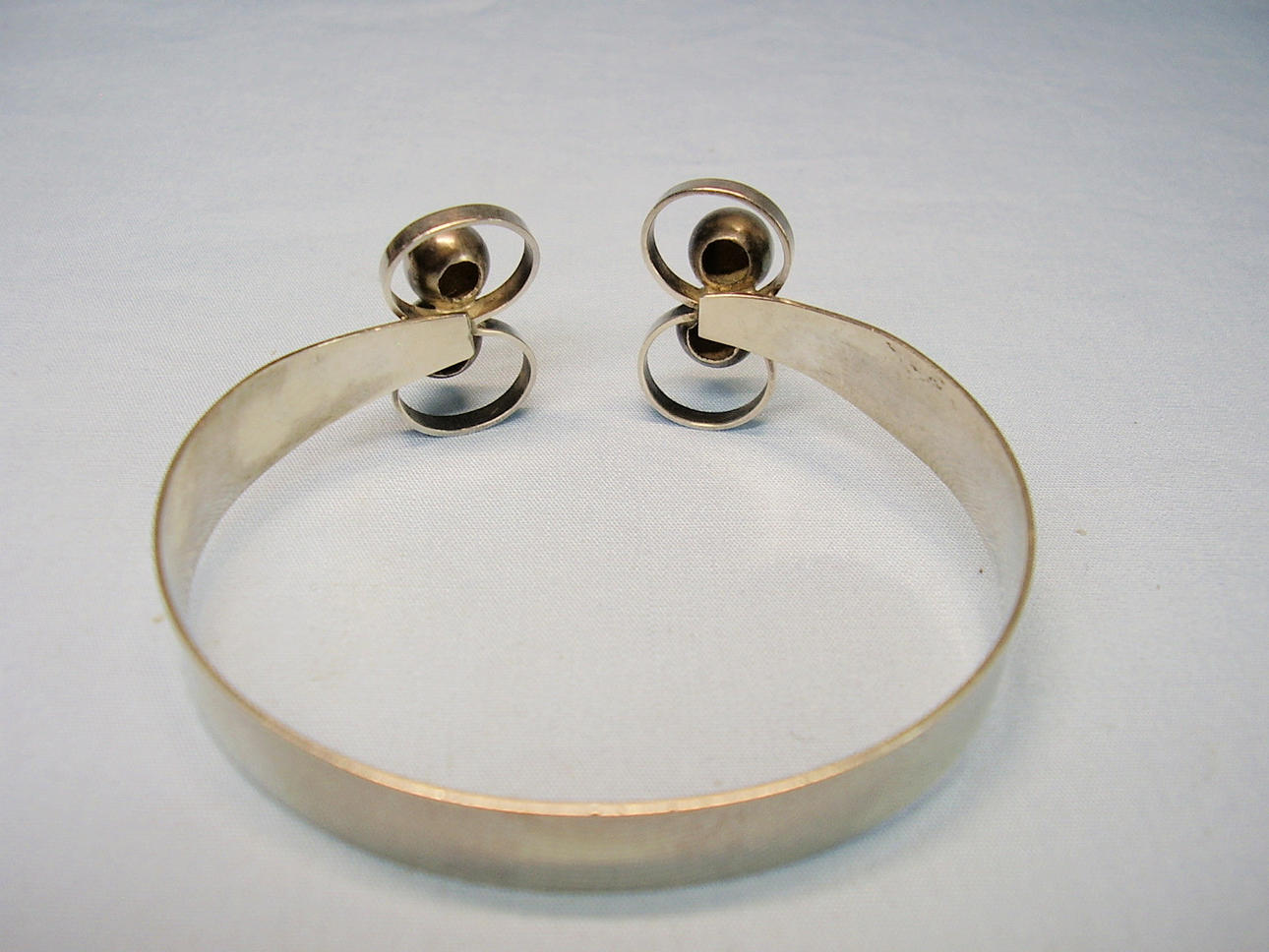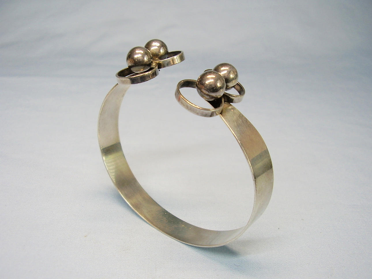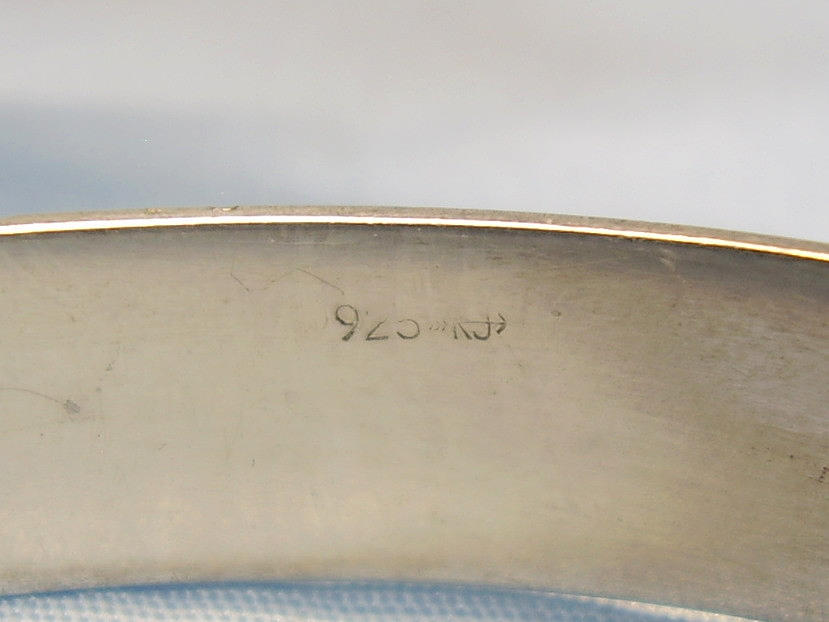 Die elegante Armspange ist in Silber 925 gearbeitet und punziert, dazu trägt sie das Signet von Kollmar & Jourdan, Pforzheim aus den 1920er Jahren.