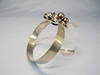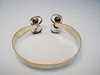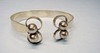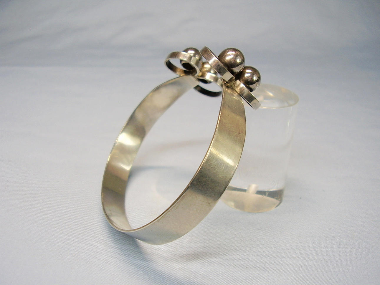 Sie ist als breites Band ausgeführt mit Kreisen und polierten Kugeln an beiden offen gearbeiteten Enden.