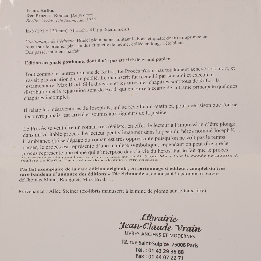 1459099. FRANZ KAFKA, Der Prozess 1925.