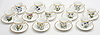 11 Speiseteller, Eschenbach, Bayern, Deutschland, Durchmesser 24 cm 4 Teller, Eschenbach, Bayern, Deutschland, Durchmesser 19 cm 13 Kaffeetassen mit Untertassen, "Schwedische Landschaftsblumen", Eschenbach, Bayern, Deutschland, Tassenhöhe 6,5 cm, Laufdurchmesser 12cm.