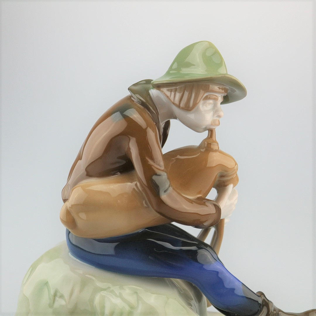 Rosenthal, um 1930, Michael Emanuel Beyrer Design, Dargestellt ist ein Hirte mit Dudelsack auf einem Fels-Sockel, Bodenmarke, Modell-Nr. K197, Höhe: 18,5 cm.