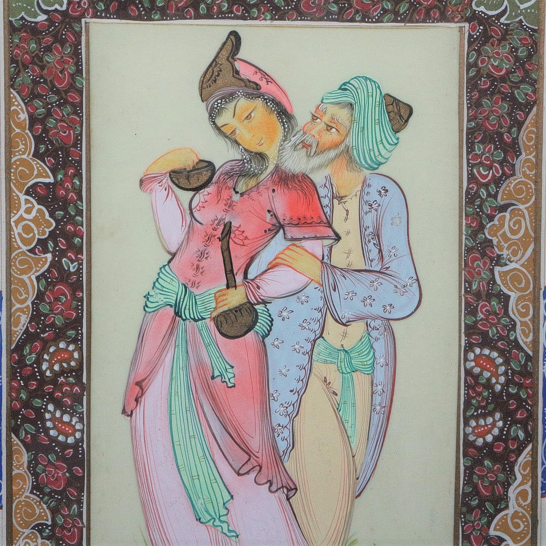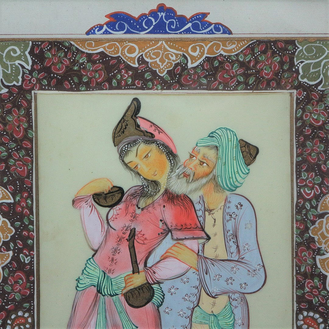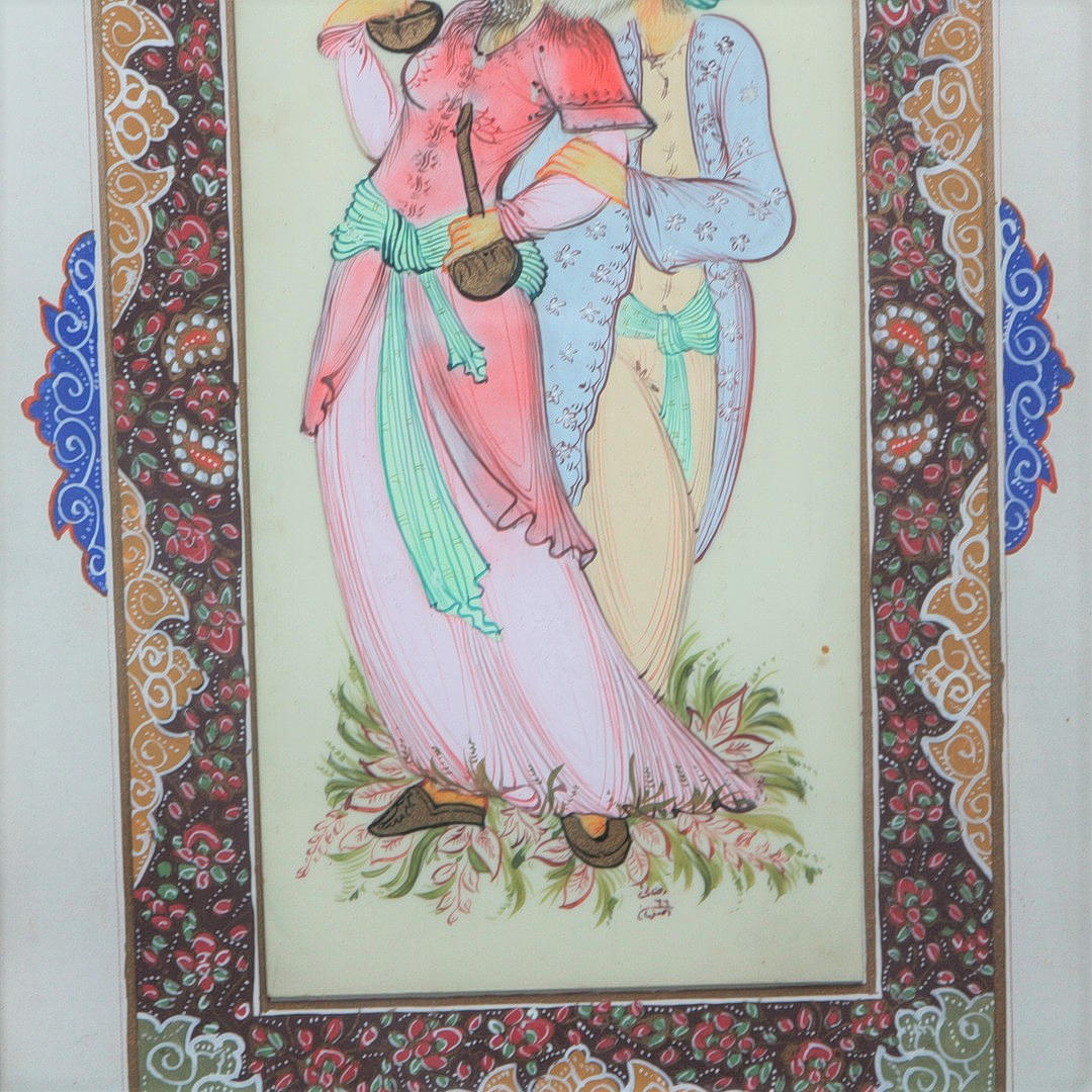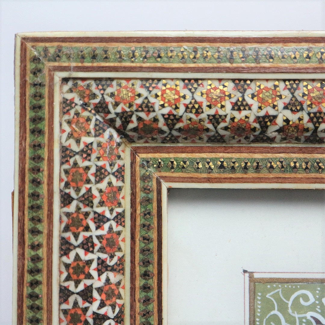 Zeichnung auf Bein, signiert, ca 1930, gerahmt, Holzmosaikrahmen, Bildmaße: 10,5 x 21 cm, Rahmenmaße: 26,5 x 37,5 cm.