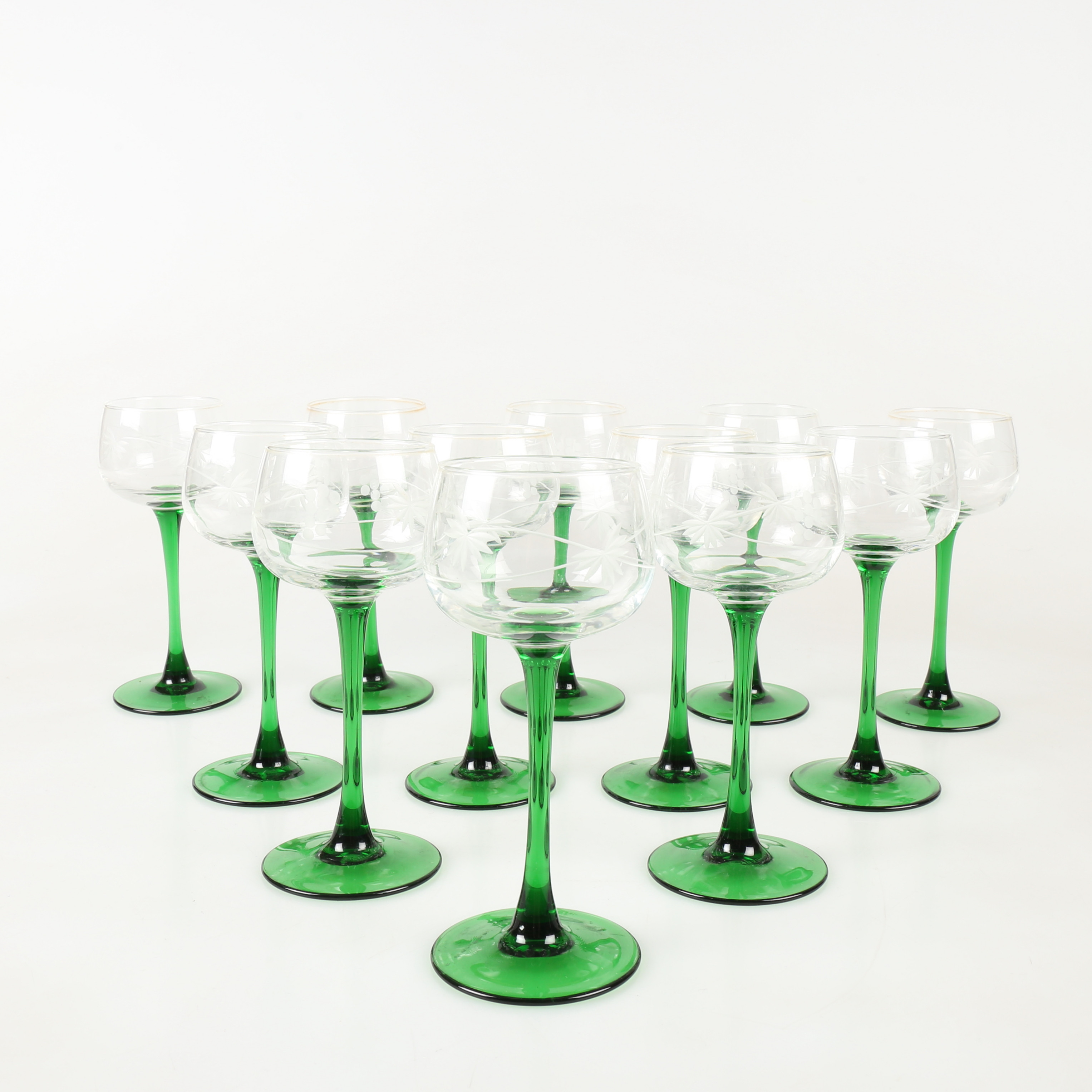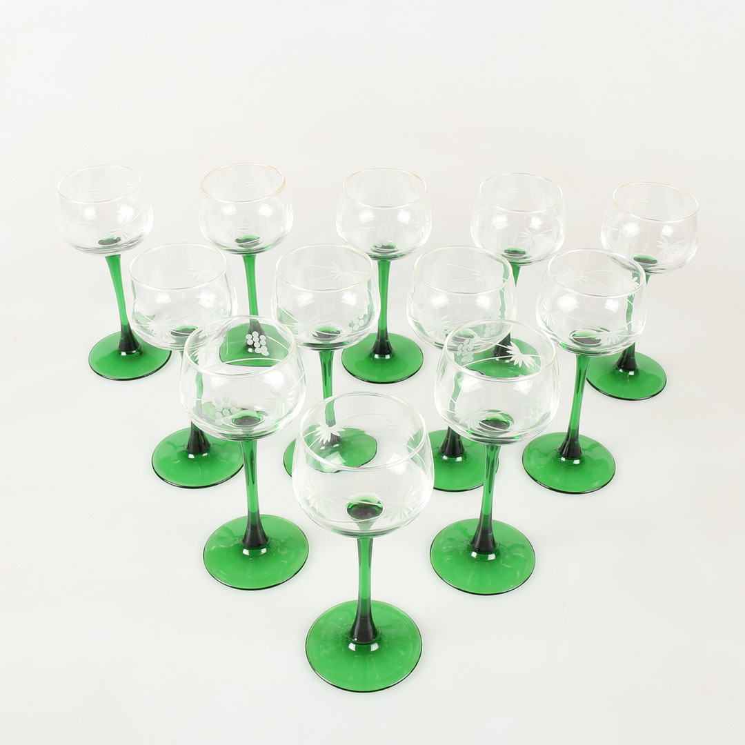 1472244. WEINGLAS, 12-tlg. grüner Fuß.