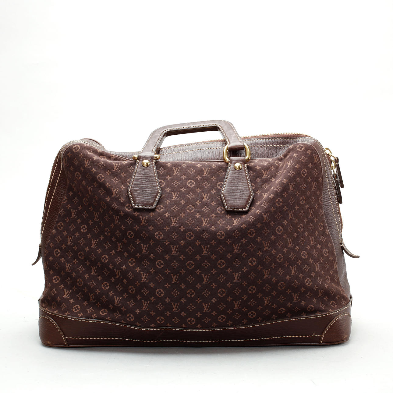 LOUIS VUITTON, „Lin Ebene Caryall Initials“, Tasche aus Textil mit Monogrammmuster, braunem Leder und Messingdetails, innen mit Textil gefüttert, ein Reißverschlussfach, gemarkt „LOUIS VUITTON PARIS made in France“ und Datumscode (2005), Weite 48 cm, Tiefe 20 cm, Höhe ca. 33 cm.