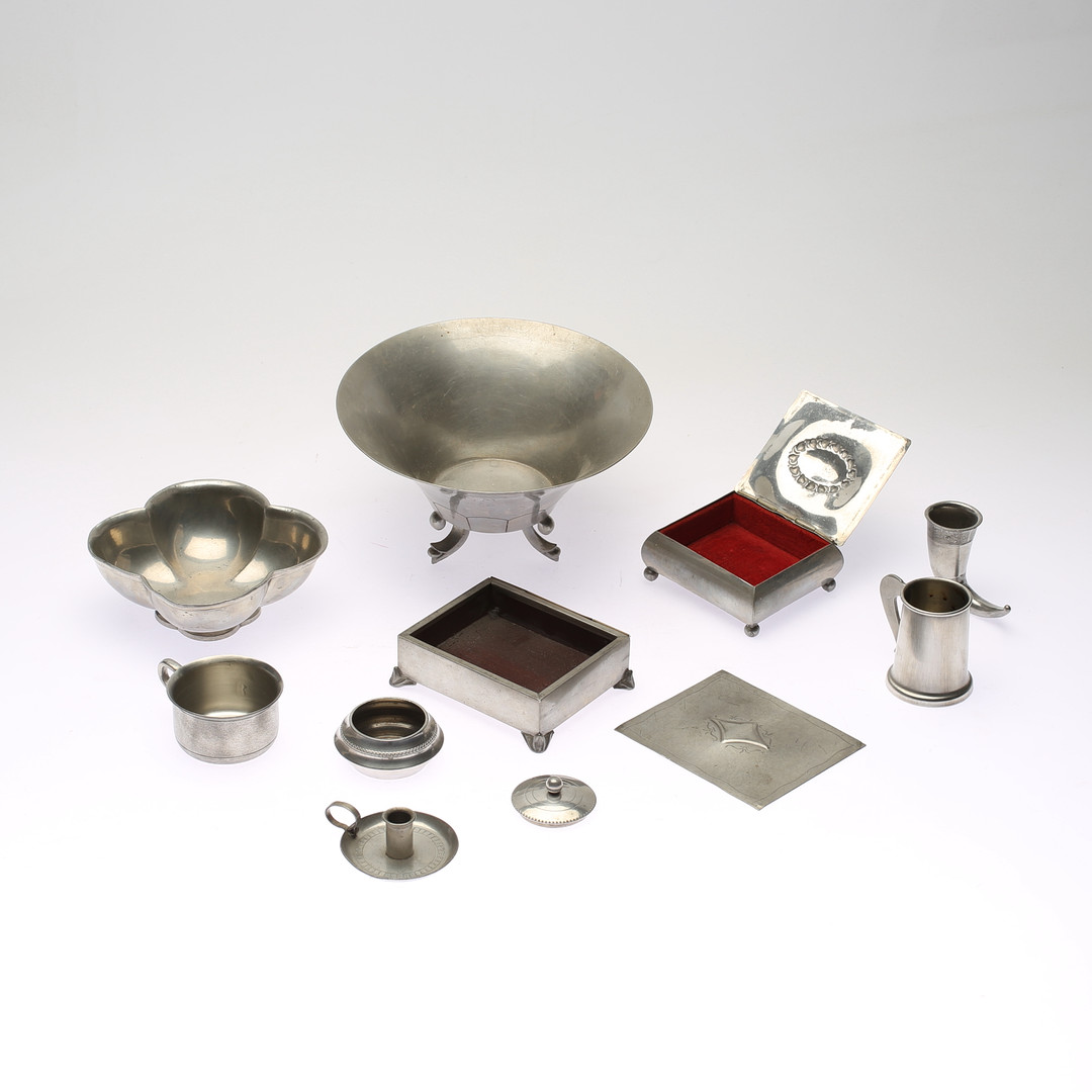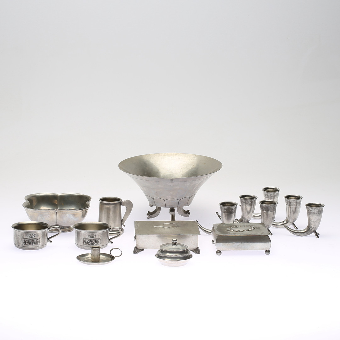 1486701. ZINNOBJEKTE, 15 Stück, 1900er Jahre.