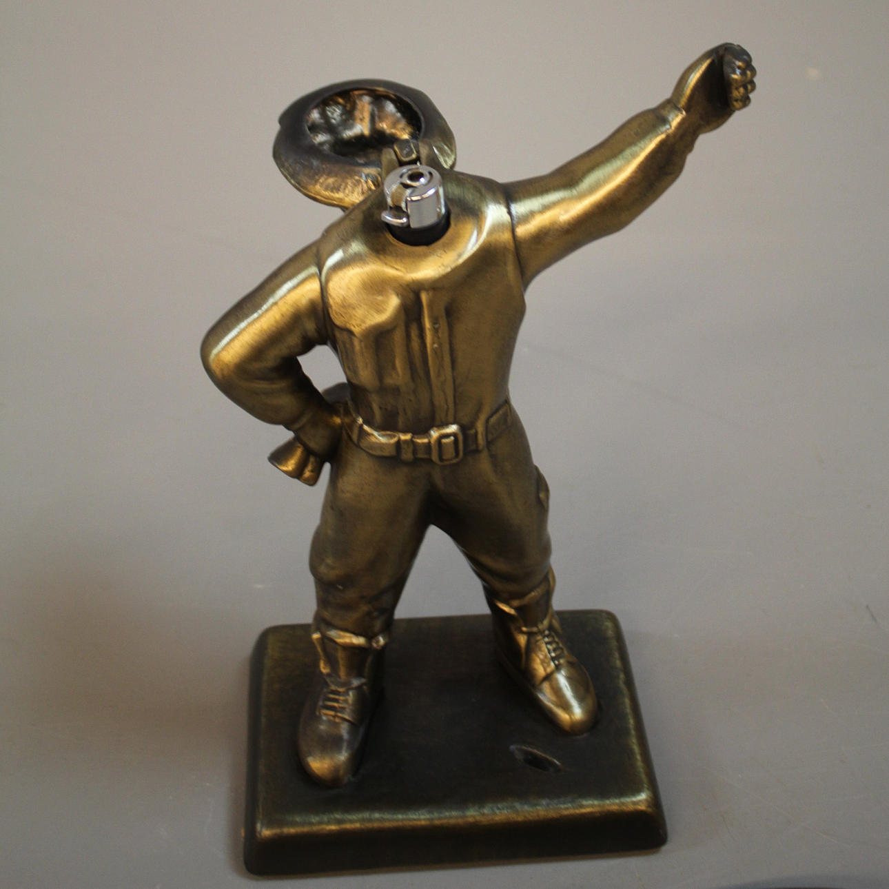 Feuerzeug in der Figur. Gesamthöhe 27 cm.