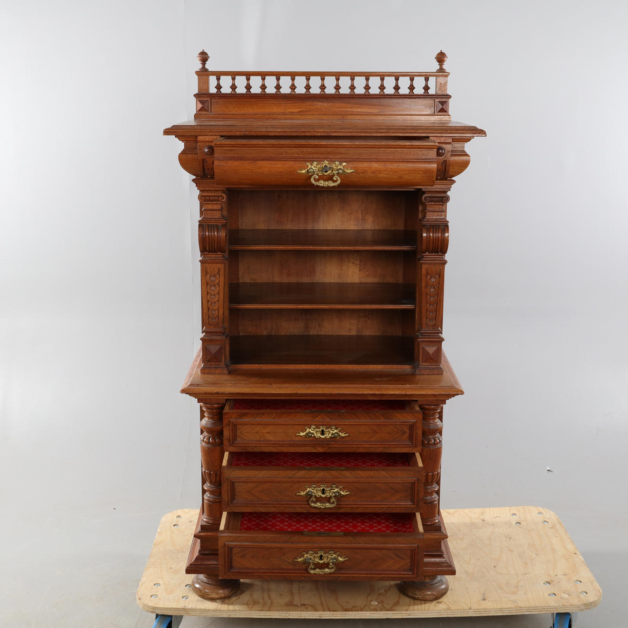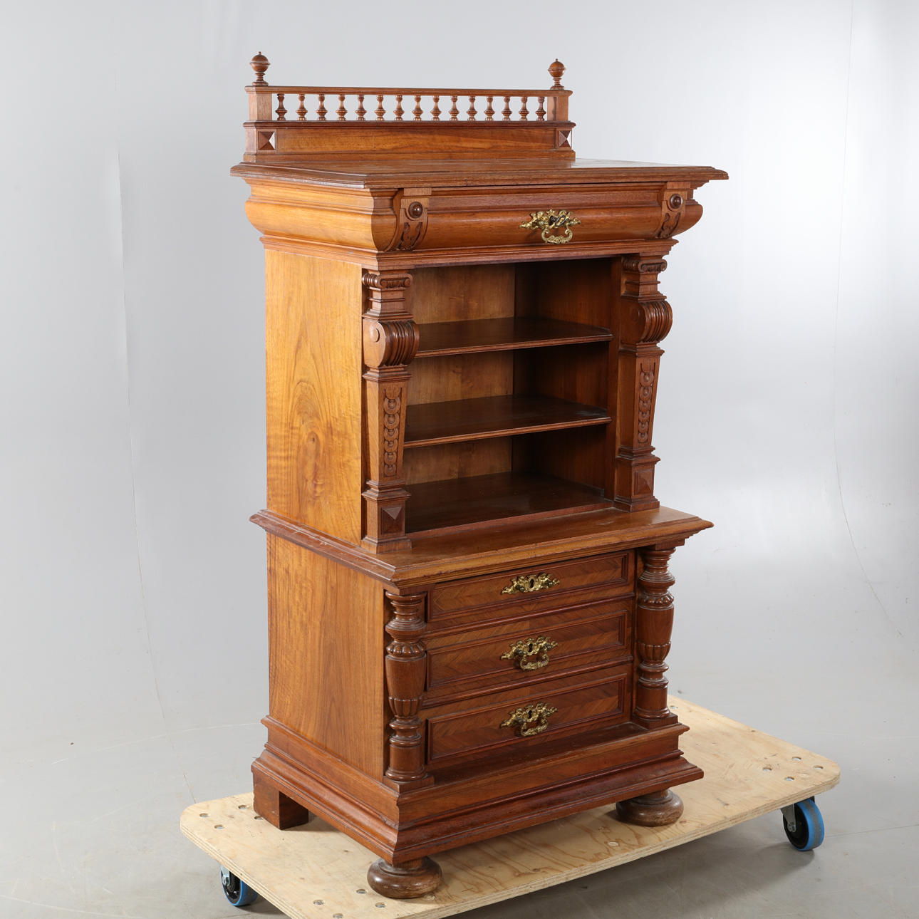 Renaissanceschrank, 1 + 3 Schubladen und Einlegeböden Höhe ca. 138 cm Breite ca. 69 cm Tiefe ca. 48 cm.