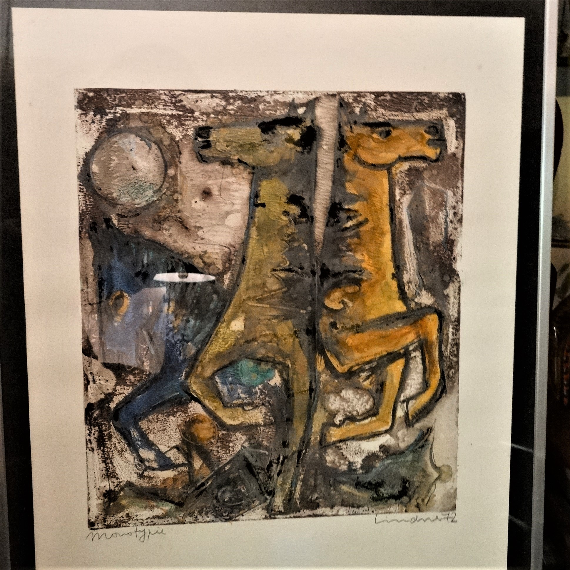 1498518. WALTER LINDNER. Pferde, Monotypie, 1972, handsigniert.