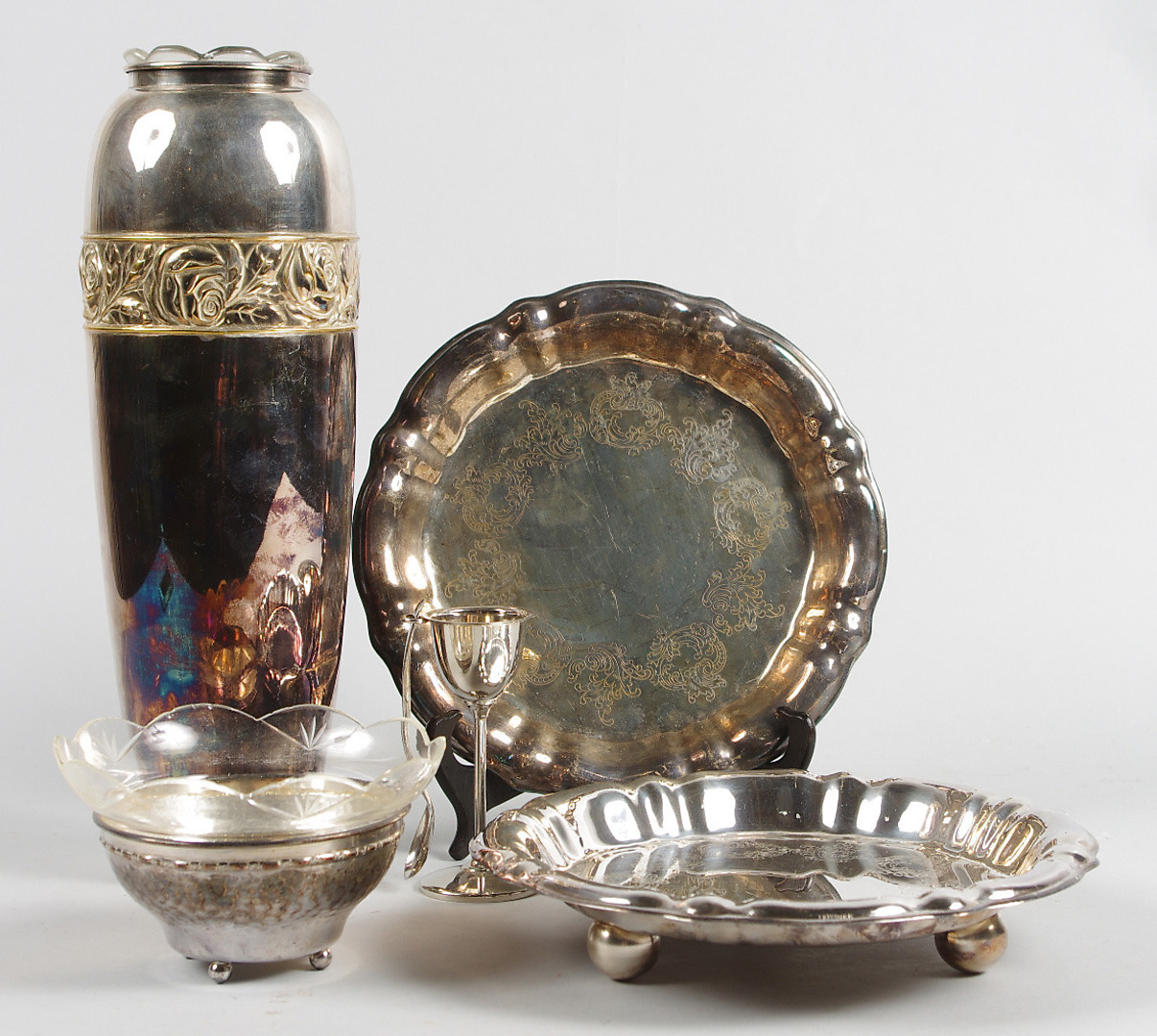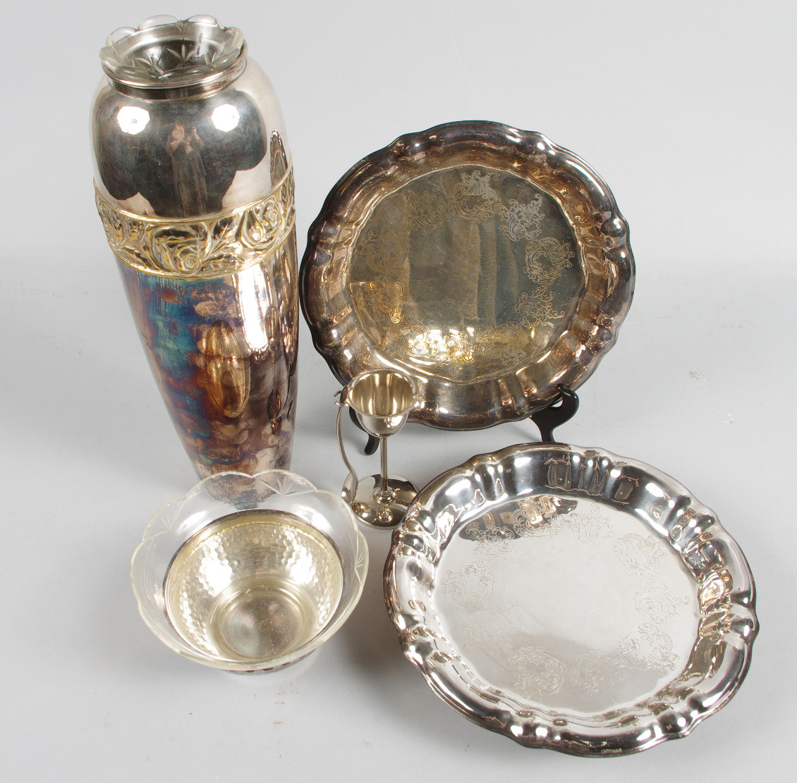 149944. TELLER, SCHÜSSEL UND VAS, Neusilber/ Glas.