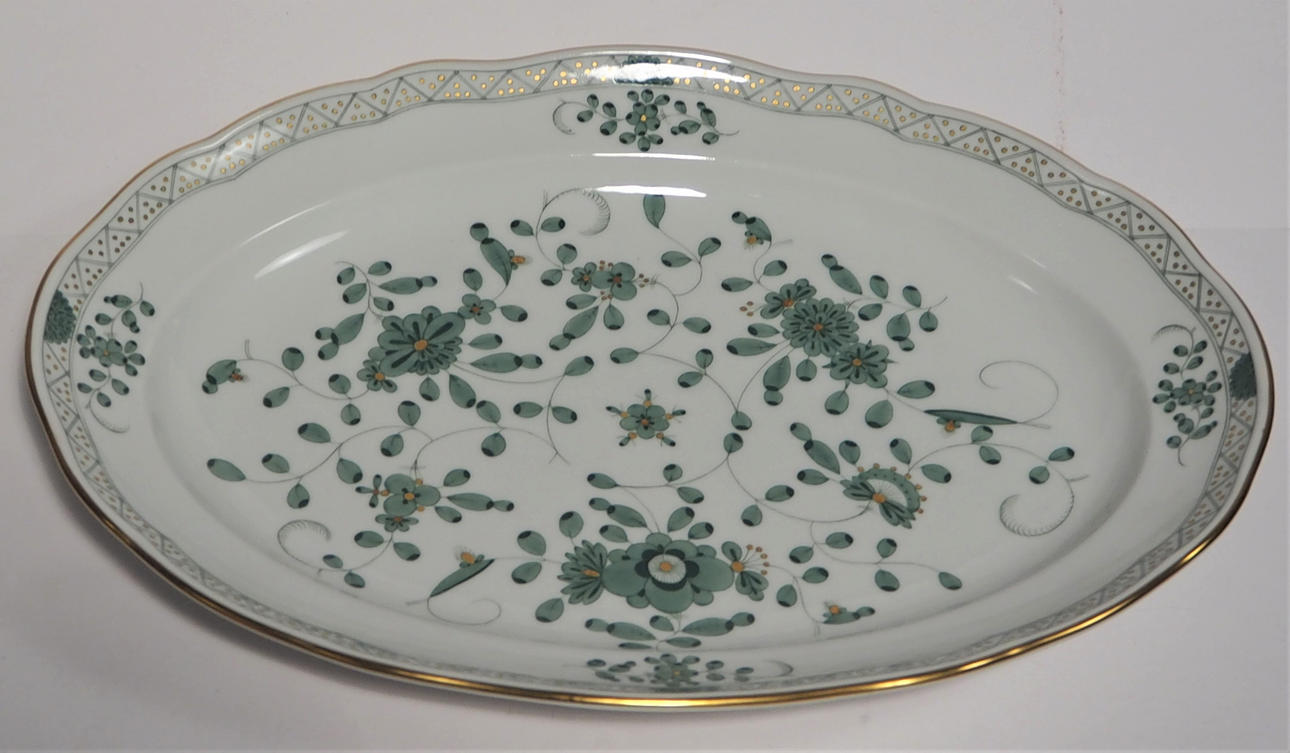 12 Speiseteller, Ø 25,5 cm 12 Teller tief, Ø 20,5 cm 12 Teller, Ø 22 cm Saucentopf, Länge ca. 24 cm, Höhe 17 cm Terrine mit Deckel länglich, Länge 27 cm, Höhe 15,5 cm Terrine mit Deckel , rund, Länge mit Deckel 22 cm , Höhe 16 cm Teller/Schale, Länge 24 cm, Breite 16 cm, Höhe 5 cm Teller/Schale, Länge 19 cm, Breite 14,5 cm, Höhe 3,5 cm Schale, 23 x 23 cm, Höhe 6,5 cm cm.