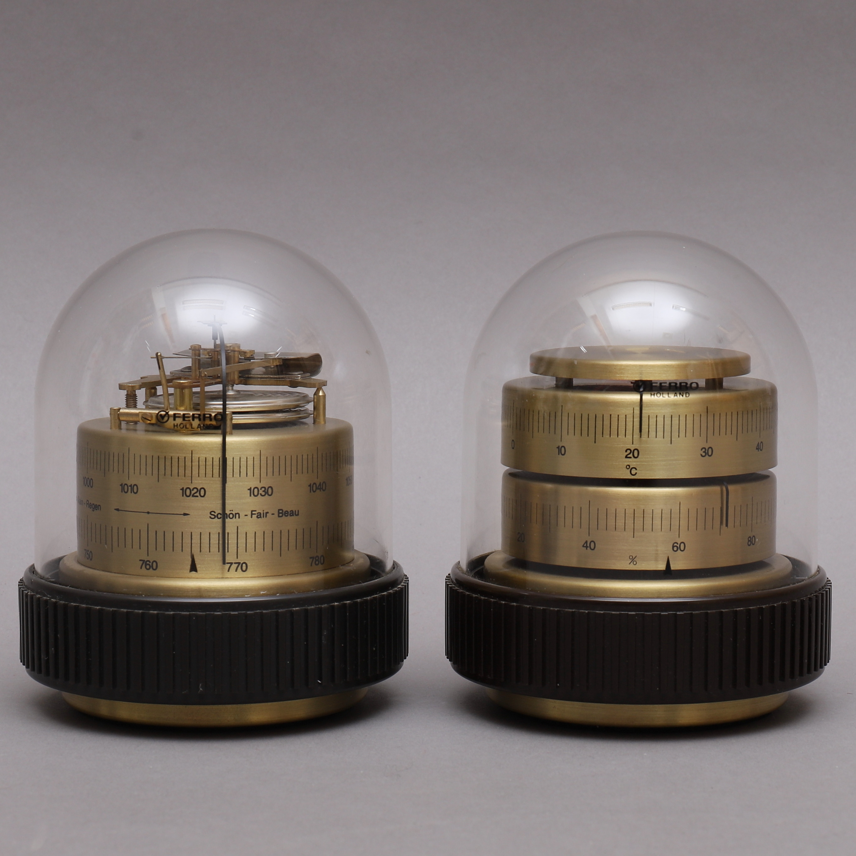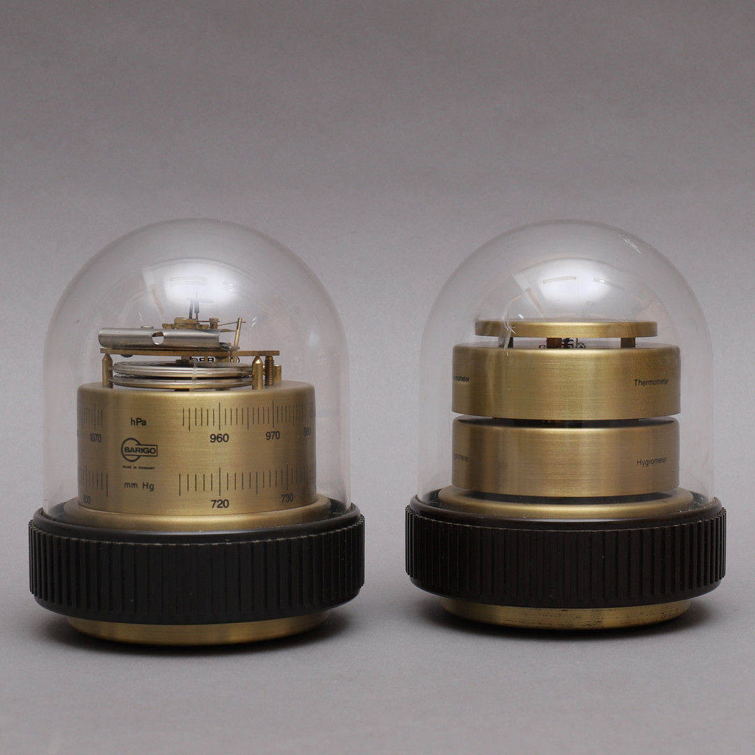 1506028. WETTERSTATION, 2 Stück, Barometer, Hygrometer, Thermometer, Barigo, Ferro.