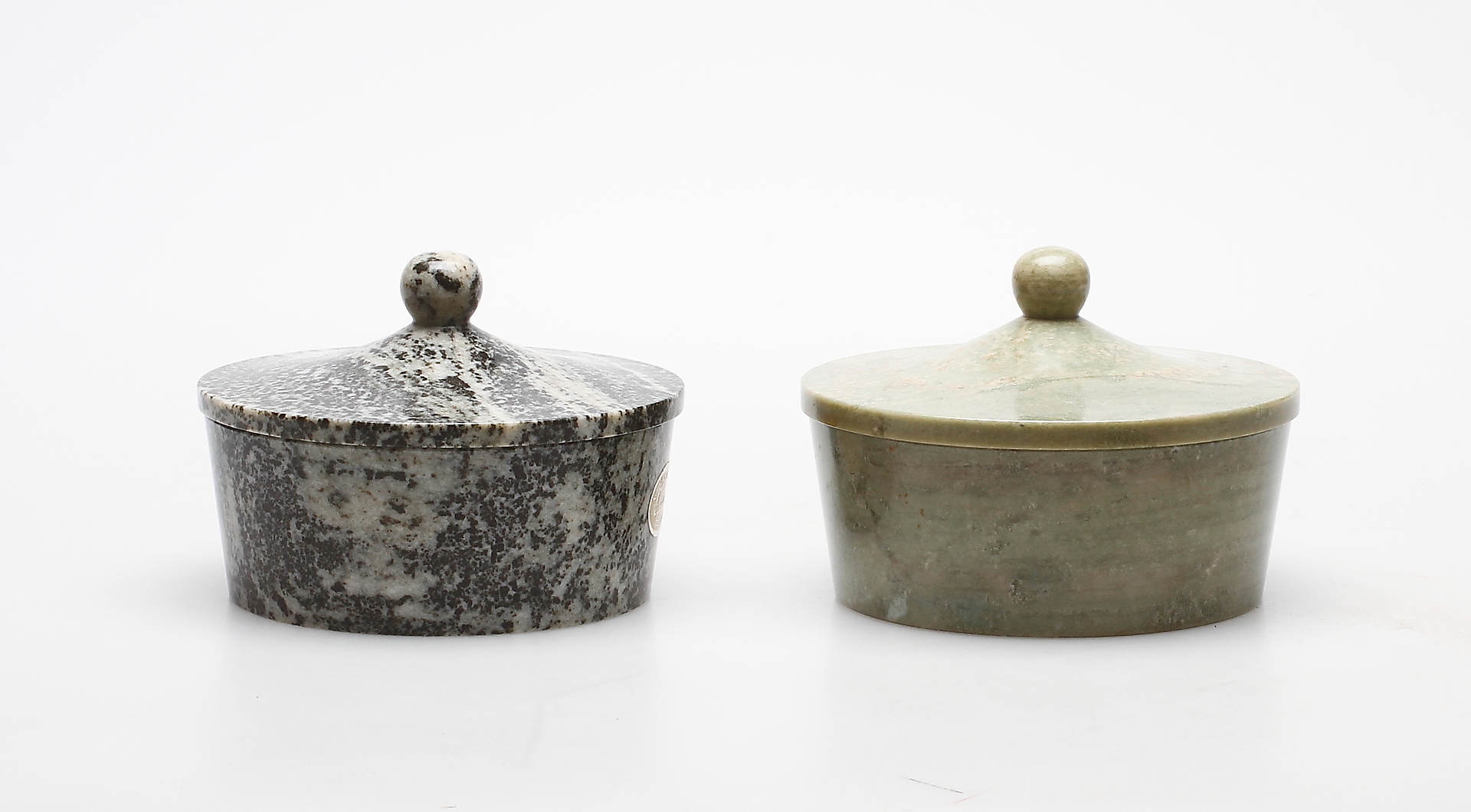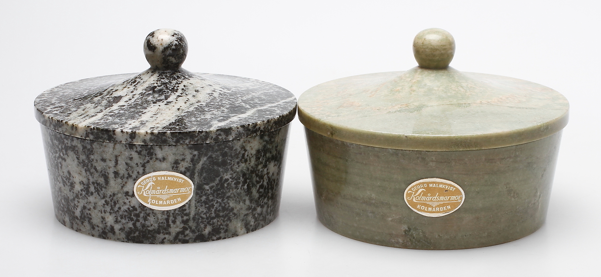 150707. BUTTERBOX, 2 Stück, kolmårdsmarmor, George Malmkvist.
