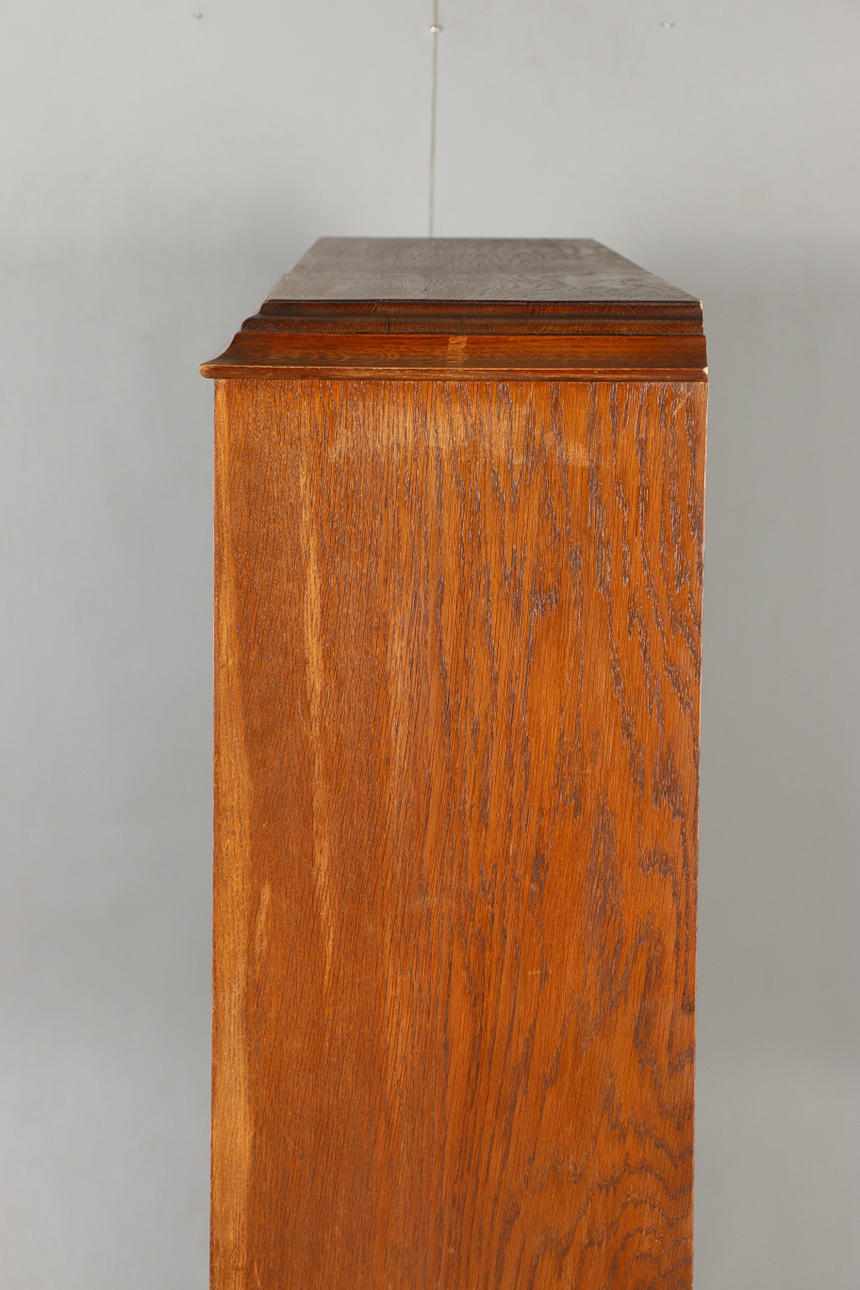 Vitrine in Eiche, mit Vitrine Länge 181, Breite 32,5, Höhe 164 cm.