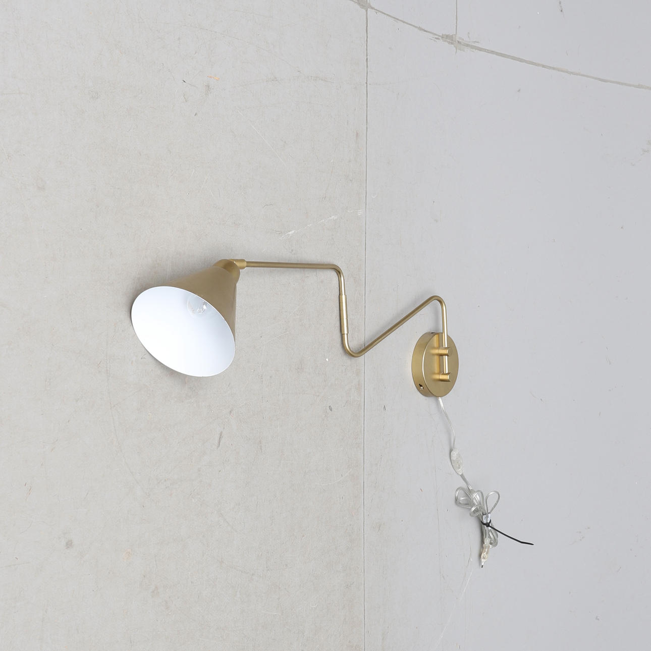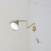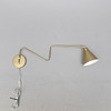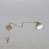 Messingfarbenes Metall. Schwenkarm. Ein einstellbarer Lichtpunkt. Schirmdurchmesser ca. 15,5 cm. Länge aufgeklappt ca. 75 cm.