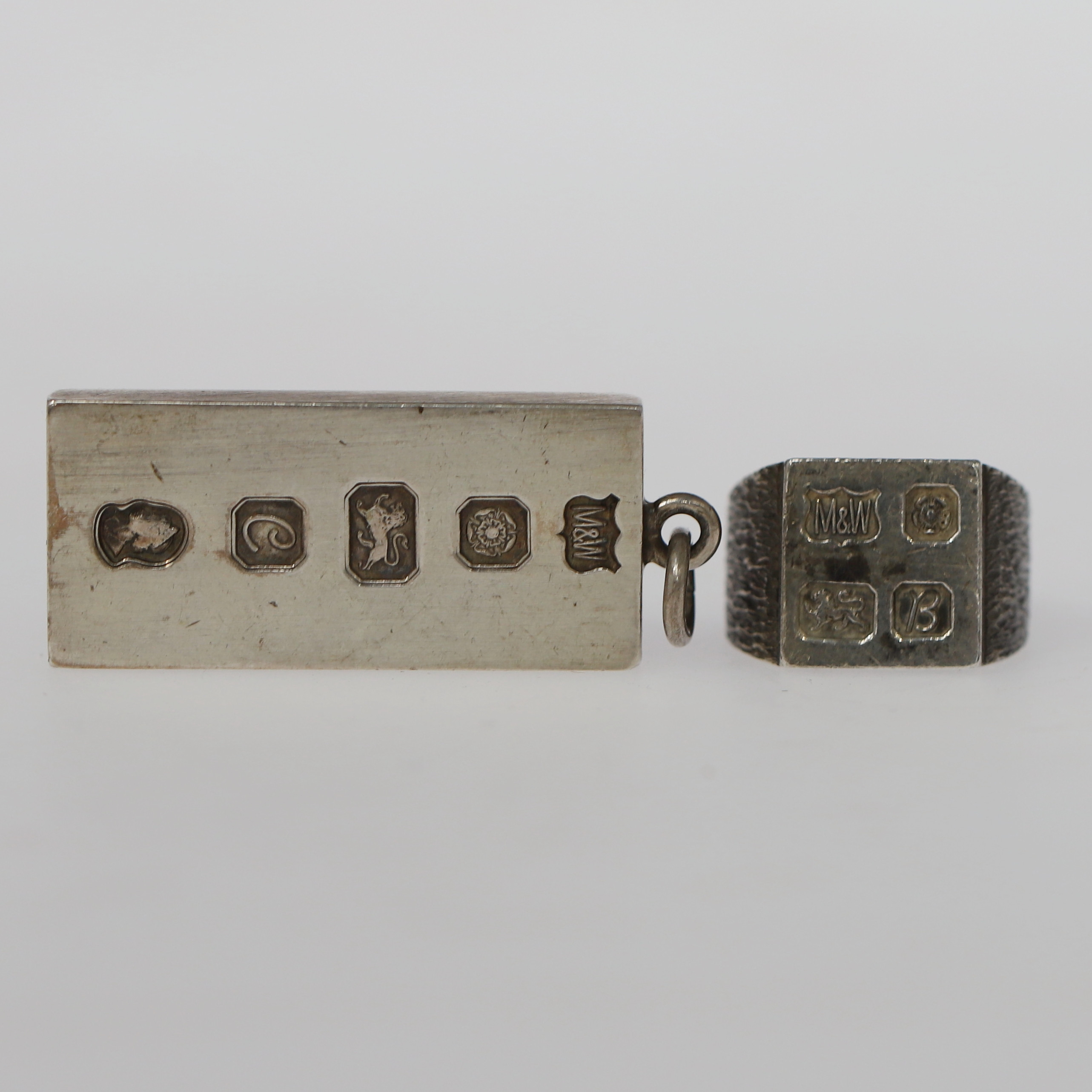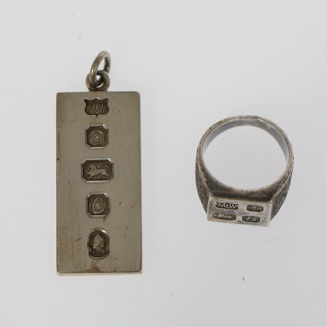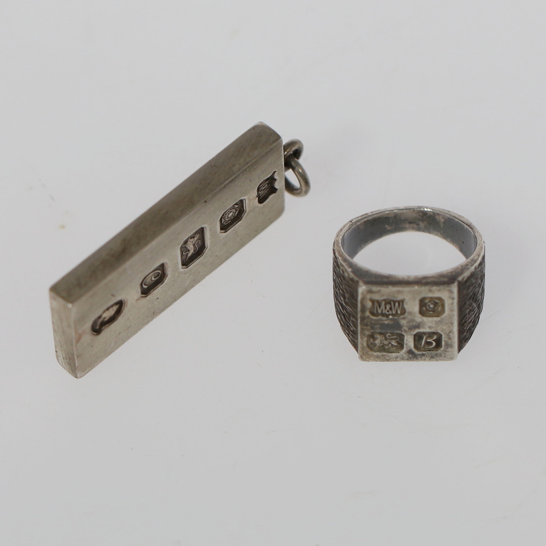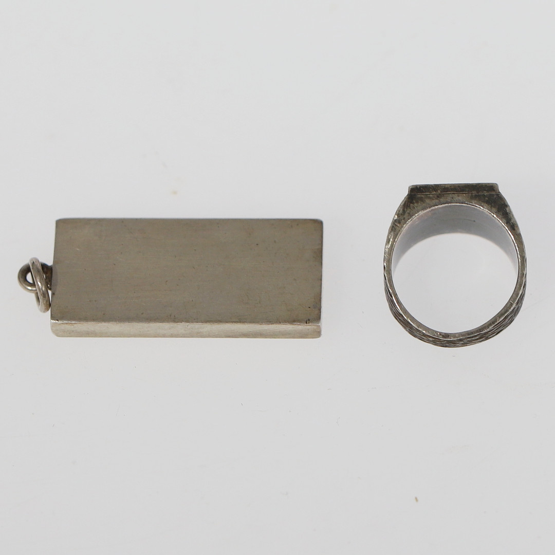 1515113. SILBERBARREN-ANHÄNGER UND GEMEINSCHAFTSRING.