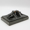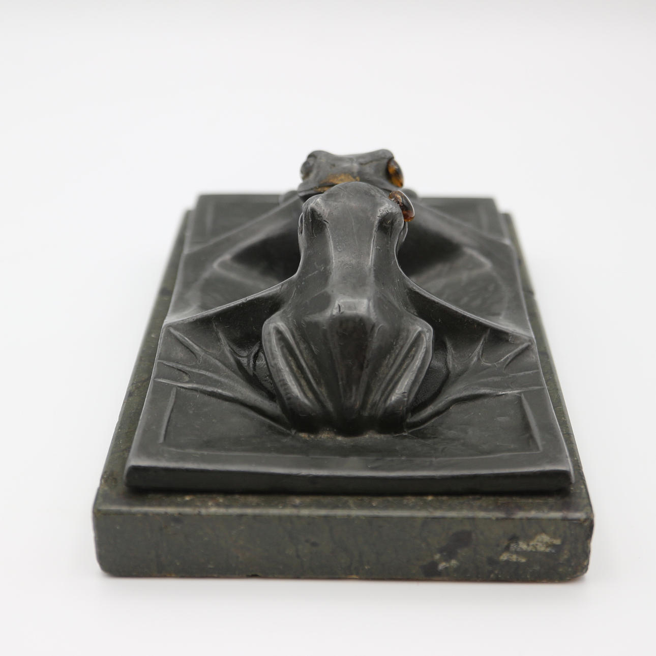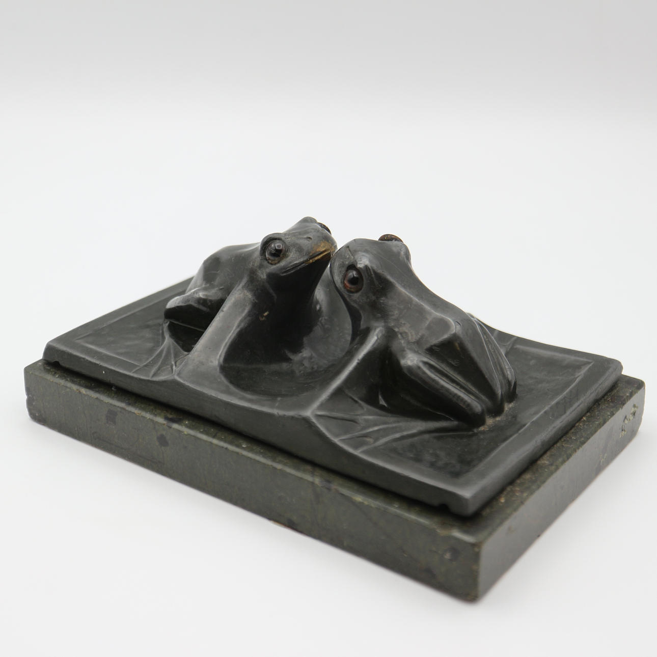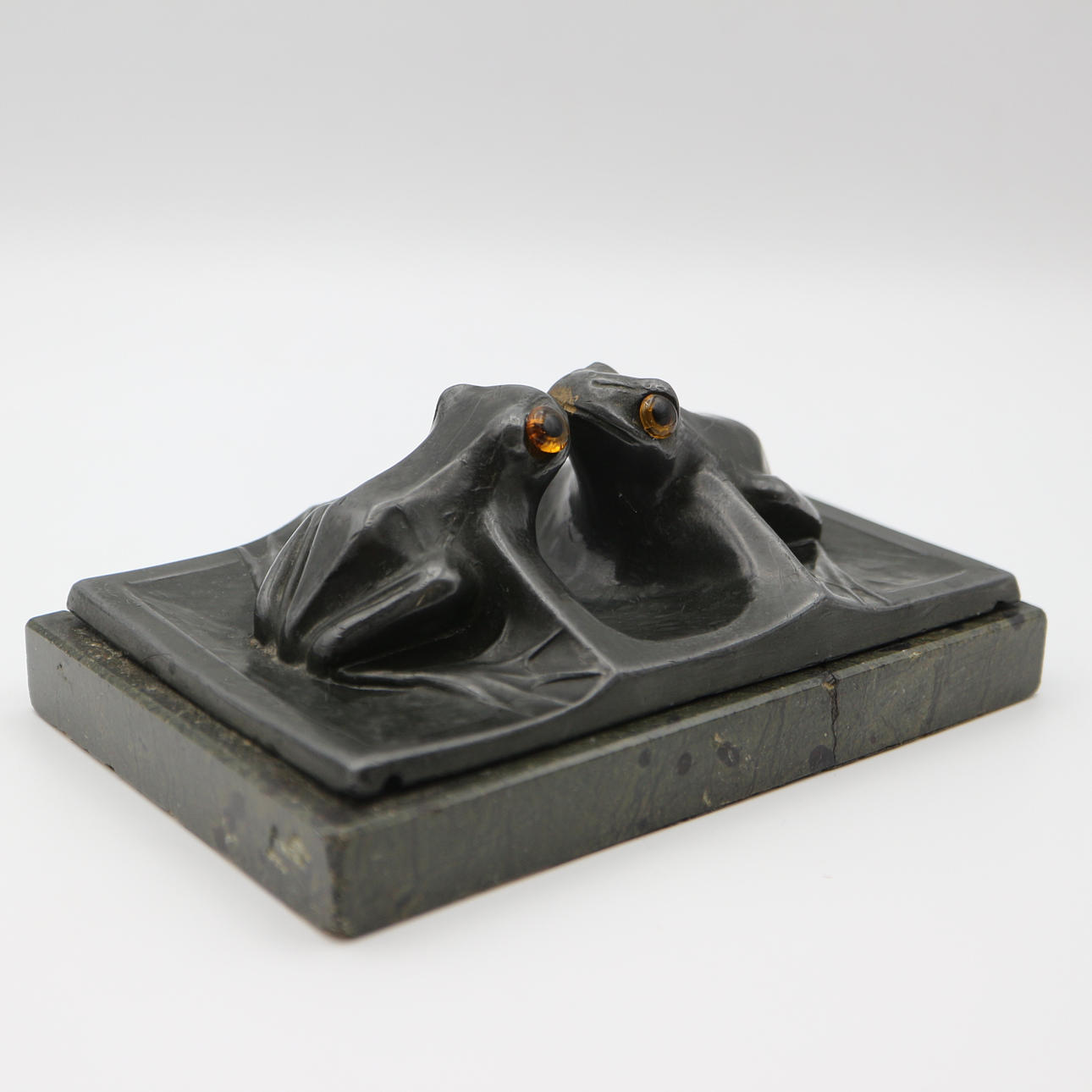 Jugendstil Visitenkartenhalter, mit Glasaugen, Frankreich, mit Marmorplatte, um 1900, Maße: 13,5 x 9 cm.