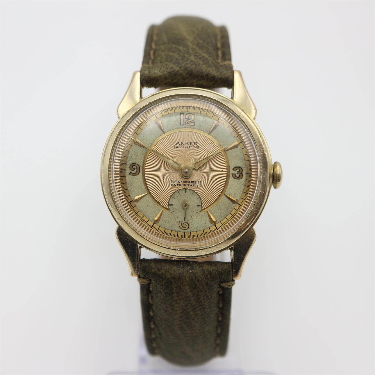 Anker Armbanduhr, 1950 Jahre, Walzgold-Double 20 Mikron, Boden Edenstahl, neues Lederarmband, Gehäusedurchmesser ohne Krone: 35 mm.