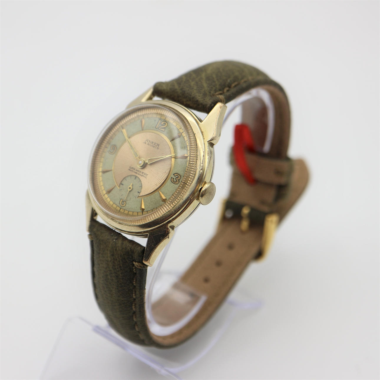 Alters- & Gebrauchsspuren, neues Lederarmband, siehe Bilder. Nicht außerhalb des Rahmens geprüft. Funktionierte bei Katalogisierung. Keine Funktionsgarantie wird abgegeben.