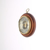 Messing und gebeiztes Holz. Durchmesser ca. 18 cm.