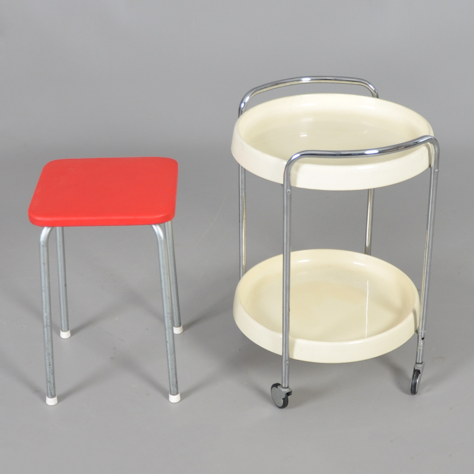 1518480. PLATTE TISCH UND Hocker 60er-70er Jahre.