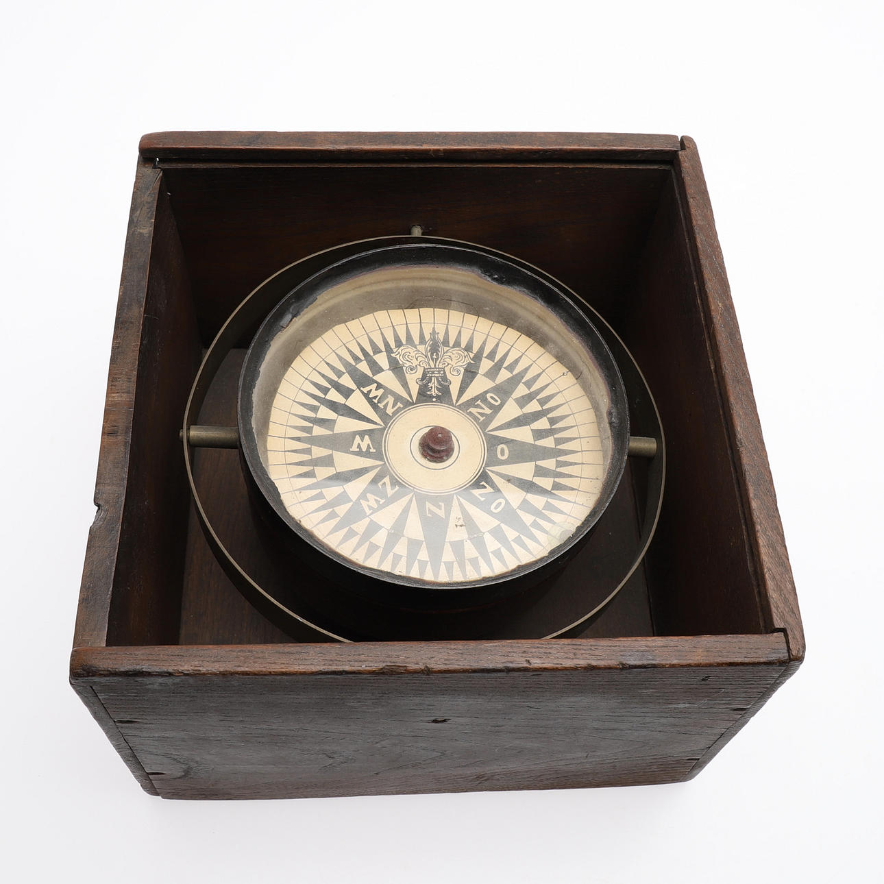 Kreisel aufgehängt, 19. Jahrhundert, mit Holzetui, 22x22 cm.