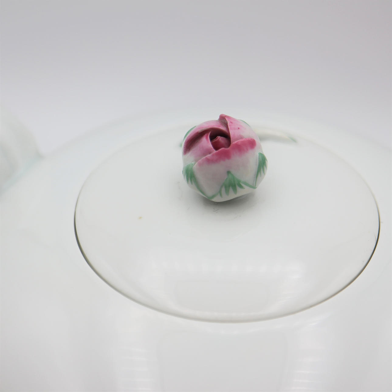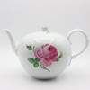 Meissen, Teekanne "Rosa Rose", Porzellan, 3. Wahl 20. Jahrhundert. Durchmesser: 14,5 cm Breite: 24 cm