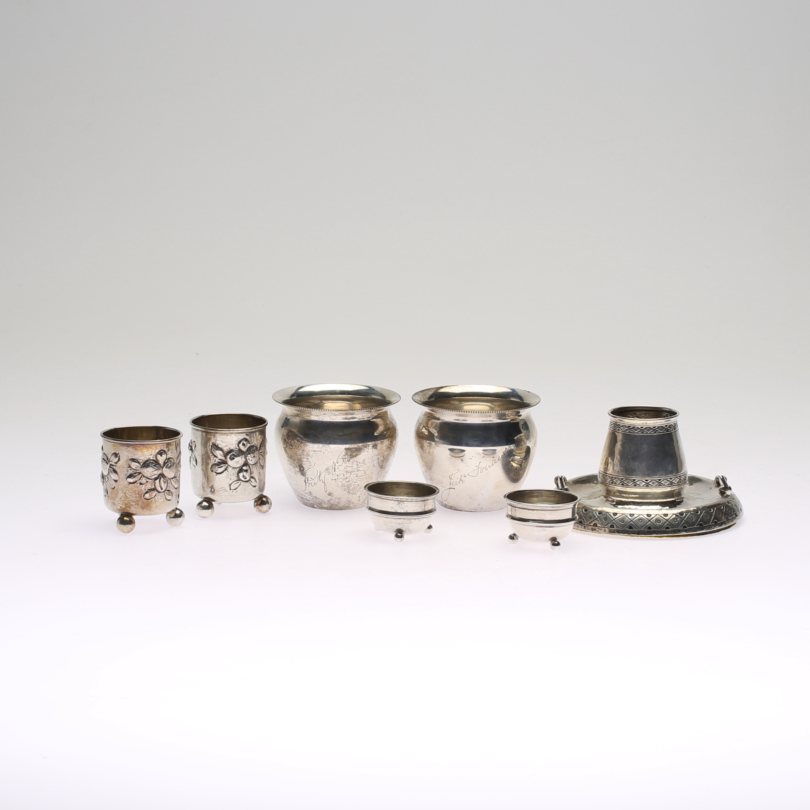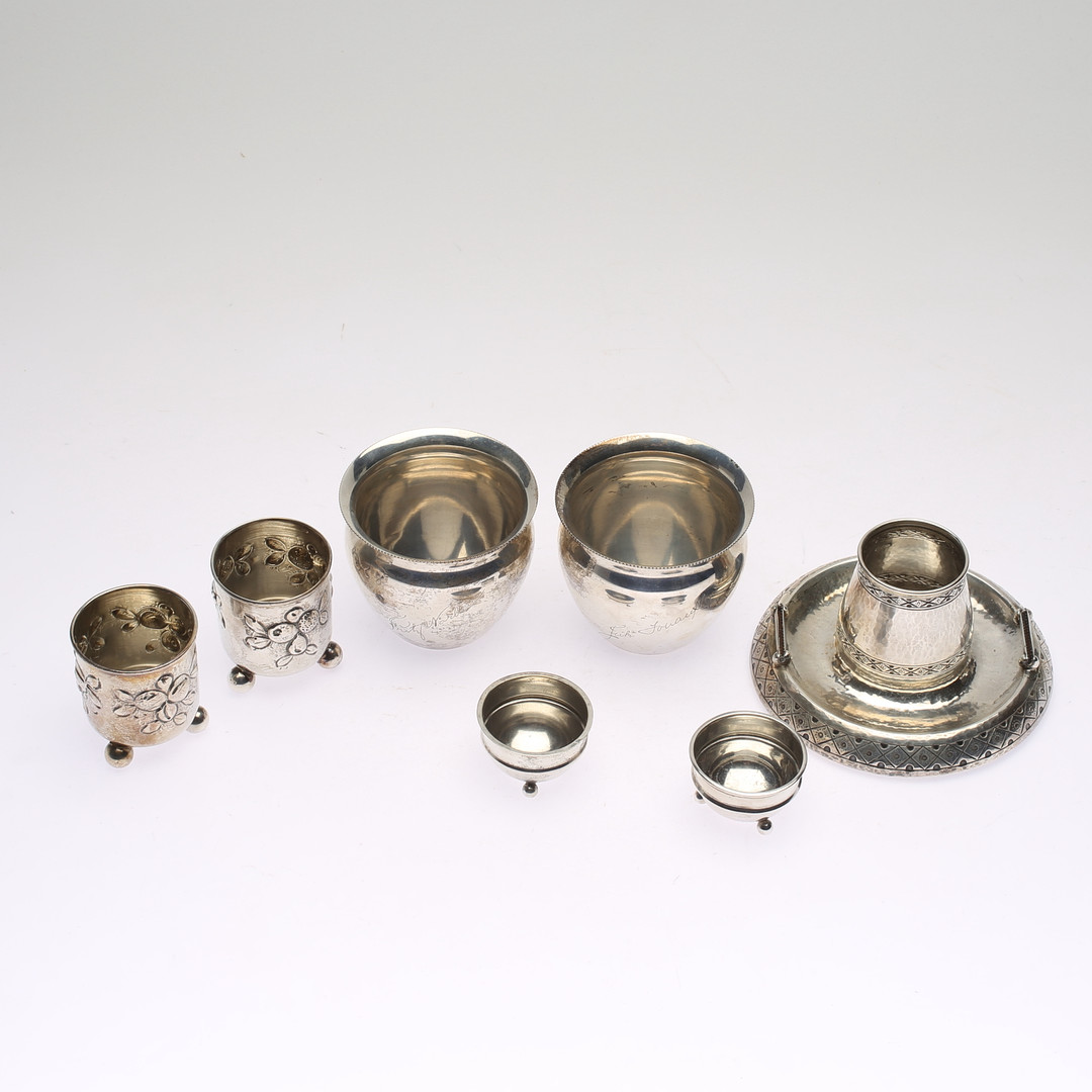 1528951. SILBEROBJEKTE, 7 Stück, darunter Schweden und England.