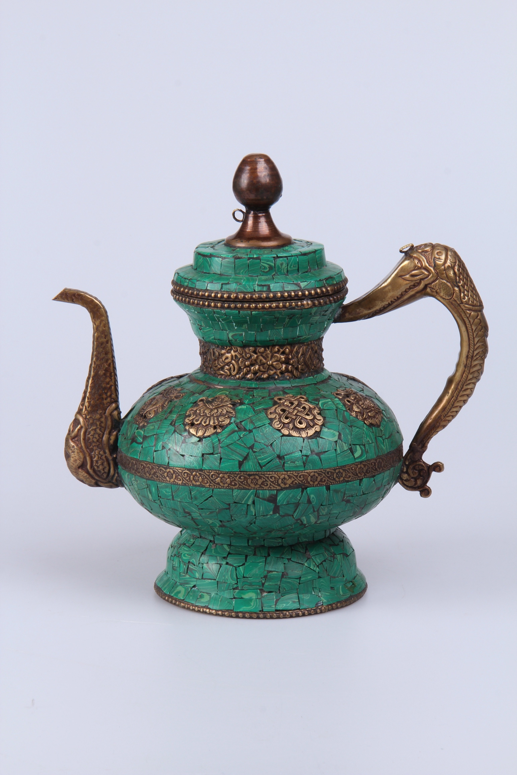 153043. Teekanne, Messing und Malachit, China, 20. Jahrhundert.